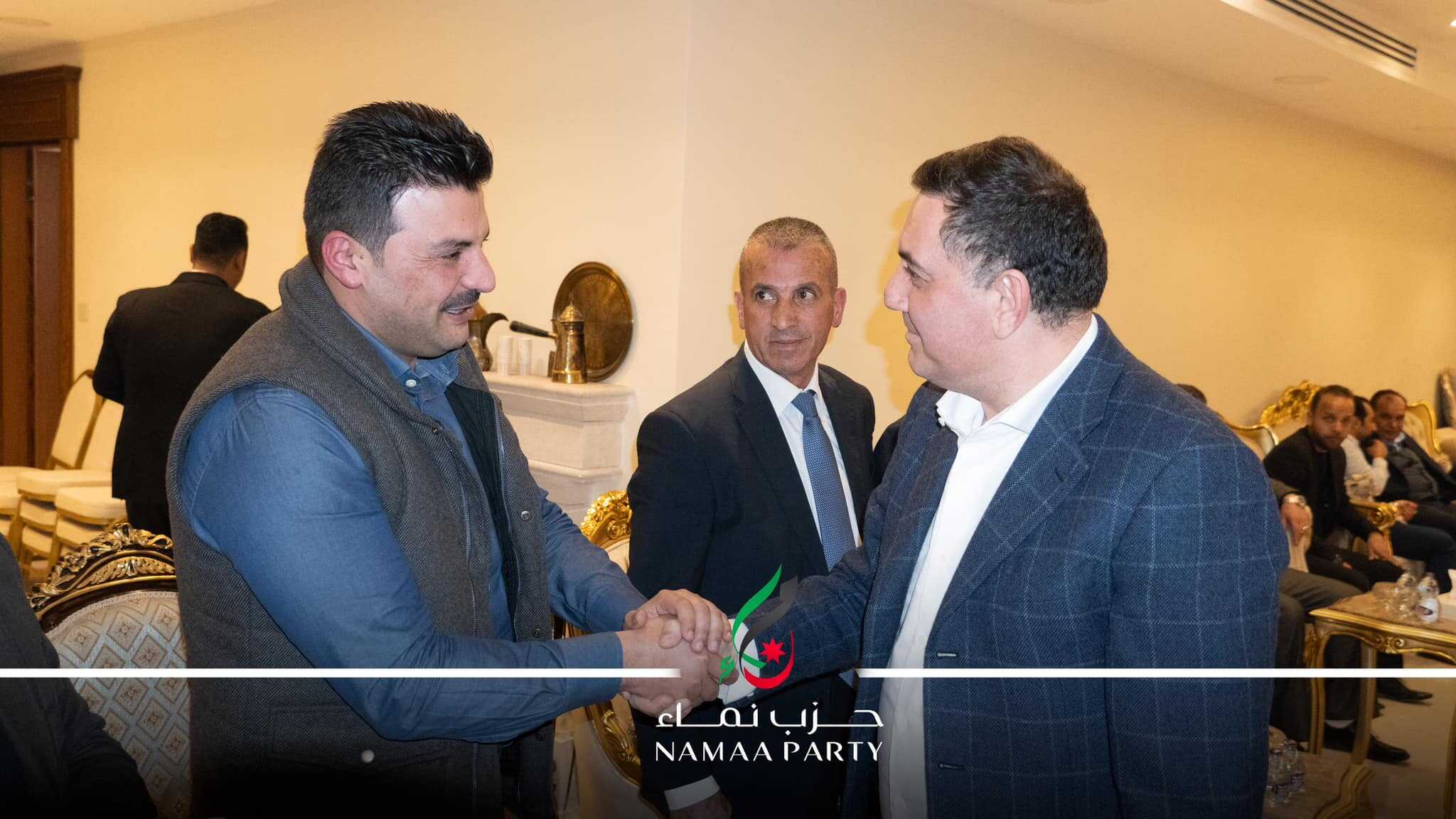 22 الاعلامي - بدعوة كريمة من المستشار الخاص للامين العام، الدكتور علي الجبور، اجتمع الدكتور محمد الرواشدة، أمين عام حزب نماء، مع نخبة من أهالي بني صخر وابناء الوطن من مختلف المحافظات بحضور رئيس المجلس المركزي السيد عبدالله الحسنات ورئيس مجلس الحكماء الأستاذ حسام ابو رمان وسعادة السفير الدكتور محمد الخالدي رئيس المكتب السياسي والسيد مدالله الطراونة، مساعد الأمين العام لشؤون الانتخابات، والسيد غسان بني عواد مساعد الأمين العام لشؤون التنمية الاجتماعية والسيد عبدالله الصمادي مساعد الامين العام للشؤون القانونية والسيد سند مجلي مساعد الامين العام لشؤون الشباب ونخبة من اعضاء حزب نماء .