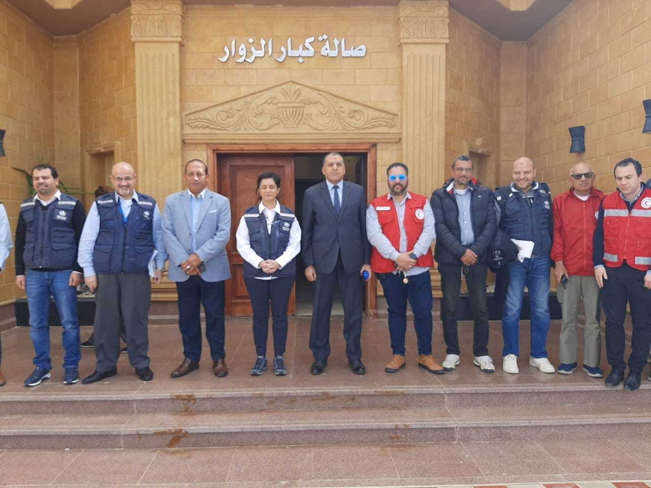 زار وفد من منظمة الصحة العالمية/ شرق المتوسط، اليوم الأحد، مركز الخدمات الإنسانية التابع للهلال الأحمر المصري ومعبر رفح البري والجرحى الفلسطينيين في مستشفى العريش العام.