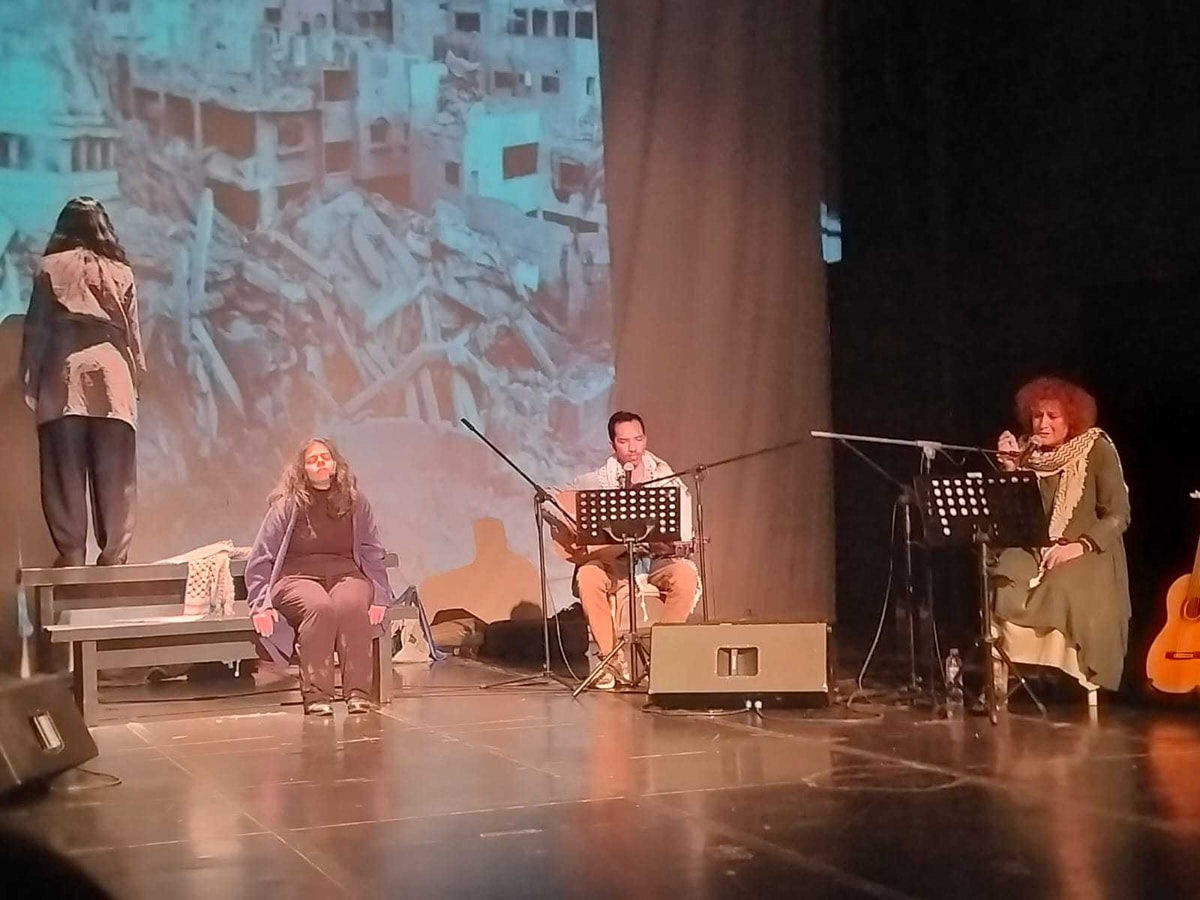 جاء العرض المسرحي الموسيقي "يا طالعين الجبل"، الذي عرض مساء أمس الأربعاء، في مسرح الشمس، احتفاءً باليوم العالمي للمسرح منسجماً مع فكرة العمل الذي يسلط الضوء على ما يحدث في قطاع غزة من موت وقتل وتهجير بشكل يومي.