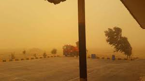 *الطريق الصحراوي غبار كثيف ومدى الرؤيا 15 متر