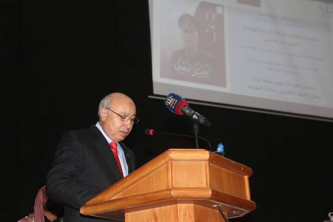 وتحدث رئيس جامعة مؤتة الأستاذ الدكتور سلامة النعيمات أن الأردنيون يحتفلون وأحرار الأمة باليوبيل الفضي ليوم الوفاء والبيعة الذي يمثل لحظة فارقة في تاريخ المملكة الأردنية الهاشمية منذ أن تسلم حضرة صاحب الجلالة الهاشمية الملك عبد الله الثاني ابن الحسين المعظم - سلطاته الدستورية، متابعاً لمسيرة البناء والتطوير التي بدأها المغفور له جلالة الملك الحسين بن طلال طيب الله ثراه - وقد شهد الأردن خلال خمسة وعشرين عاماً تحولات جذرية على جميع الأصعدة ، سياسياً واقتصادياً واجتماعياً وثقافياً، وهي تحولات تقود إلى إنجازات تعكس رؤية الملك الشاملة لتنمية شاملة ومستدامة.