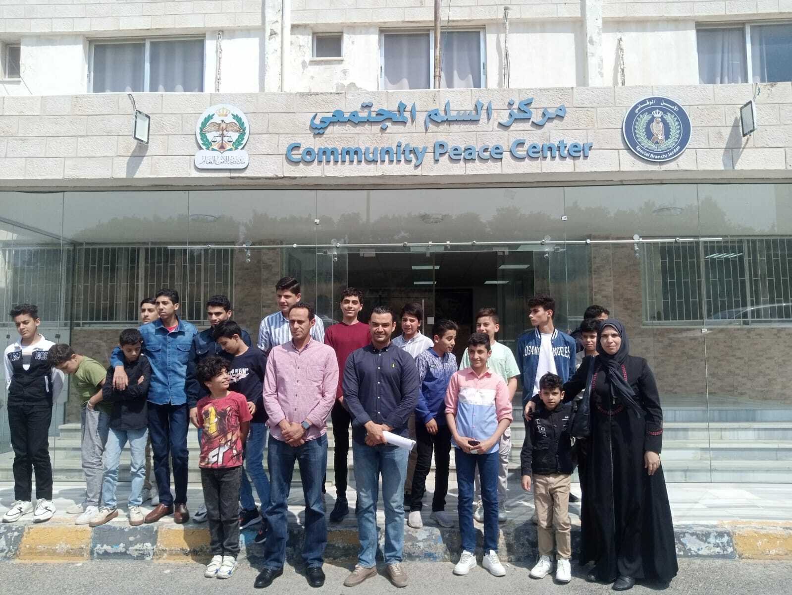 كما ونفذ مركز شباب وشابات غرب إربد زيارة إلى مركز السلم المجتمعي في مديرية الأمن العام بمشاركة 20 شاب ضمن الفئة العمرية من 12-17 عام .