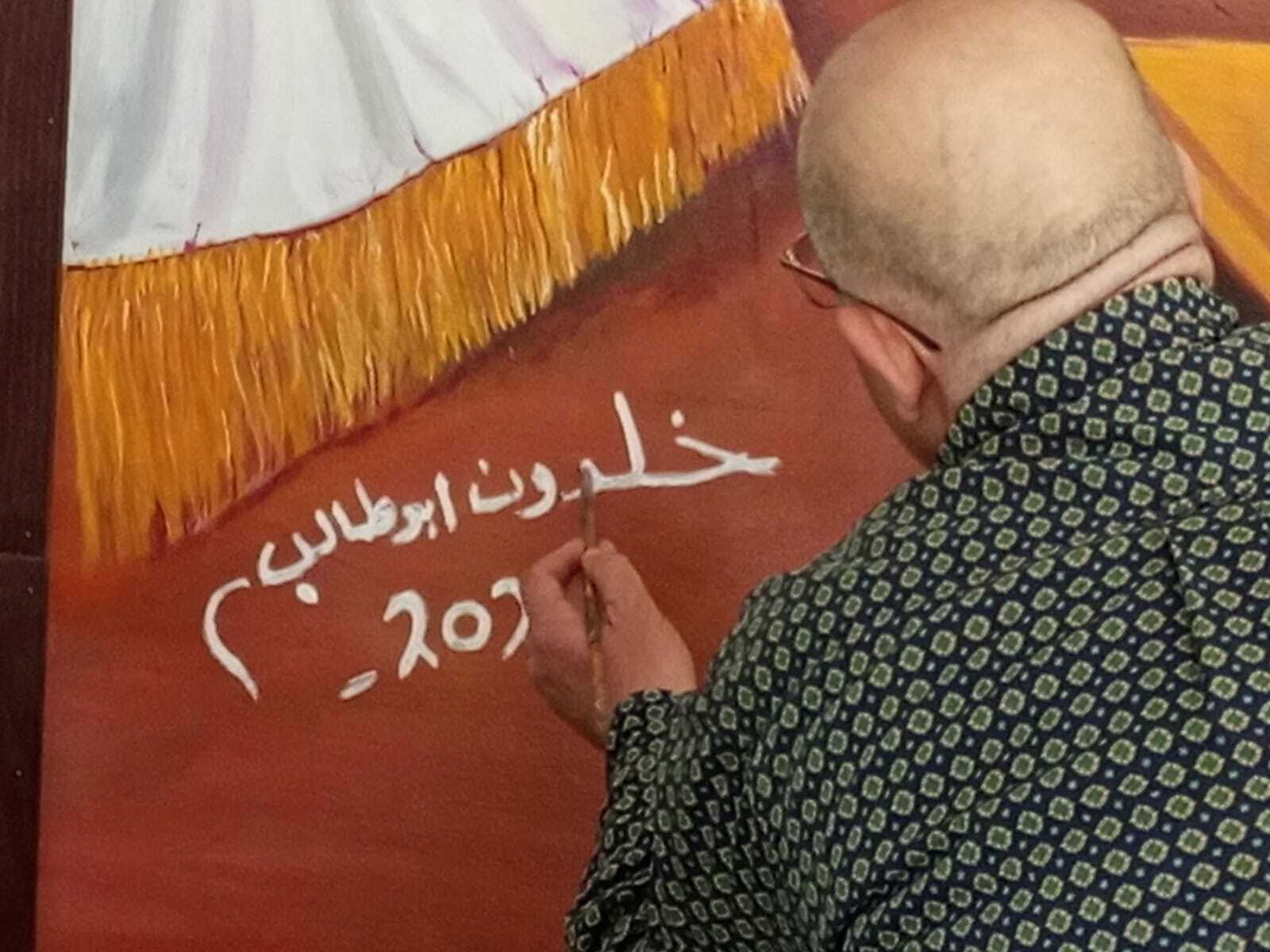 فقد تم تنفيذ هذا العمل الفني الضخم بريشة الفنان التشكيلي المبدع خلدون ابو طالب ، نائب رئيس جمعية المبدعين للفكر والثقافة والفنون ، بكل حرفية وإتقان ، وتقديرا للدور الريادي والفني الذي يقوم به الفنان ابو طالب ، ونظرا لانجازاته الفنية المتميزة على الصعيدين المحلي والعربي ، فقد وقع الاختيار على حائط الصالة الداخلية لمبنى دار محافظة البلقاء مكانا لعرضها عليه ، من جانبه قال الفنان ابو طالب ، أنني وبكل فخر واعتزاز وبكل ما يملكه القلب من محبة وتقدير لقائد الوطن