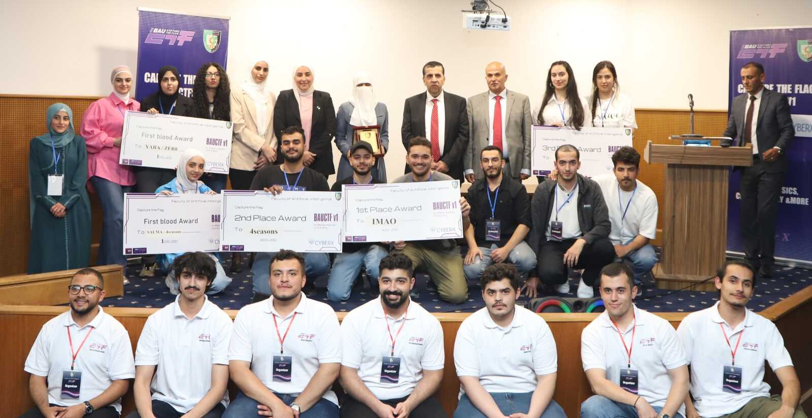 22 الاعلامي - انطلاقاً من رؤية ورسالة الجامعة في اهمية تشجيع الطلبة على مواكبة أحدث التقنيات العلمية وتطبيقها بما يتلاءم مع سوق العمل والتطورات التكنولوجية المعاصرة سلم رئيس الجامعة الاستاذ الدكتور احمد فخري العجلوني الجوائز على الفائزين بمسابقة (CAPTURE THE FLAG BAUCTFV1 ) والتي نظمت بالتعاون مع CYBERX بحضور عميد كلية الذكاء الاصطناعي الأستاذ الدكتور عمر الزعبي وعدد من اعضاء الهيئة التدريسية والادارية وطلبة الكلية.