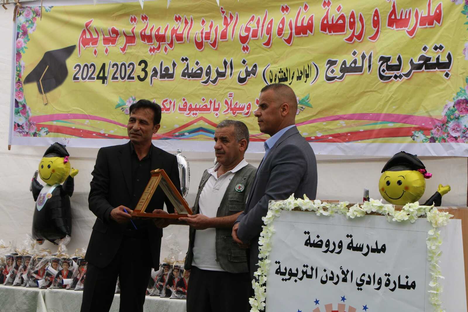 22 الاعلامي- الشونة الجنوبية-شادي نبيل-رعى مدير التربية والتعليم للواء الشونة الجنوبية/د.مازن هديرس، يرافقه مسؤول التعليم الخاص الأستاذ محمد اليماني، احتفال مدرسة و روضة منارة وادي الأردن التربوية،بتخريج فوج طلبتها الواحد والعشرون،وروضة الرند الدولية بتخريج الفوج الثاني لطلبتها والذي أقيم في ساحة مدرسة وروضة منارة وادي الأردن التربوية،بحضور عدد من موظفي المديرية،و أهالي الطلبة،وأبناء المجتمع المحلي.