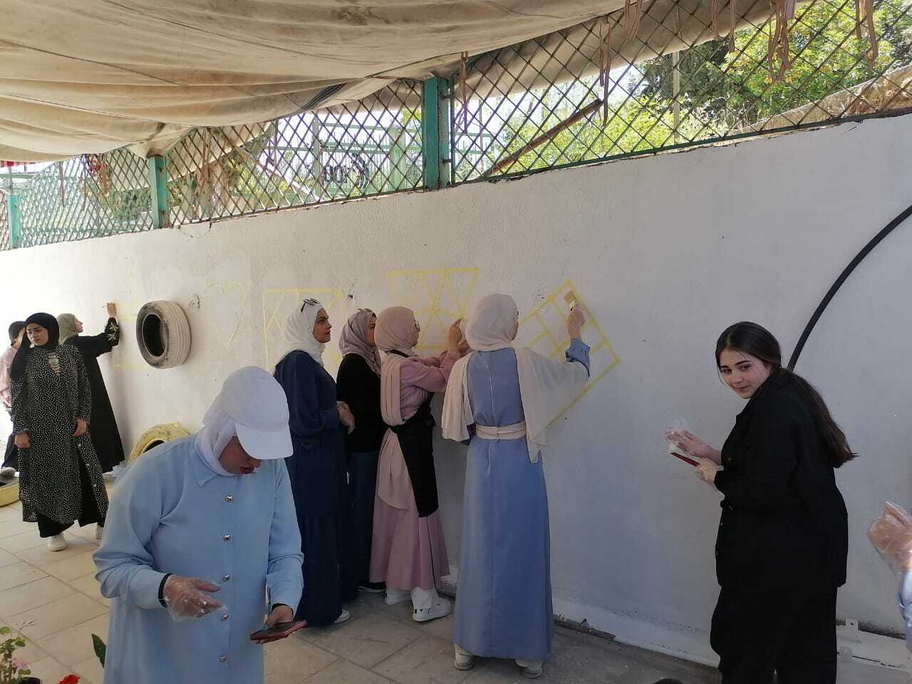 وقدمت المدربة دنيا بلاونة شرحًا نظريًا حول كيفية استخدام خامات البيئة ومخلفات المنازل من أقمشة وعبوات فارغة مختلفة الأشكال والأحجام والاستفادة منها بتشكيل مناظر طبيعية، وتحف فنية.