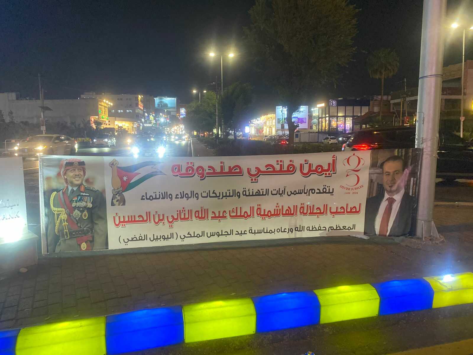 من جانبه هنأ السيد أيمن فتحي صندوقة بأسم عشيرة صندوقة جلالة الملك عبدالله الثاني وجلالة الملكة رانيا العبدالله وسمو الأمير الحسين بن عبدالله الثاني ولي العهد بمناسبة اليوبيل الفضي لتولي جلالته سلطاته الدستورية.