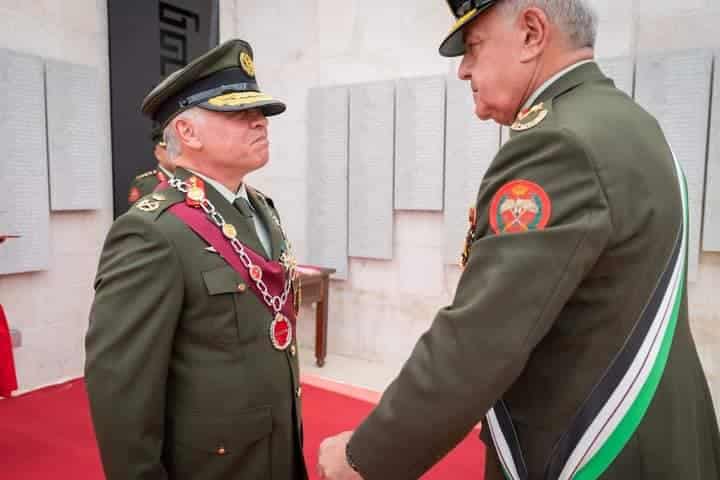 وسلم القلادة لجلالة القائد الأعلى، بحضور سمو الأمير الحسين بن عبدالله الثاني ولي العهد، رئيس هيئة الأركان المشتركة اللواء الركن يوسف أحمد الحنيطي، تقديرا لجهود جلالته في رفعة الوطن وتعزيز منعته عبر 25 عاما.