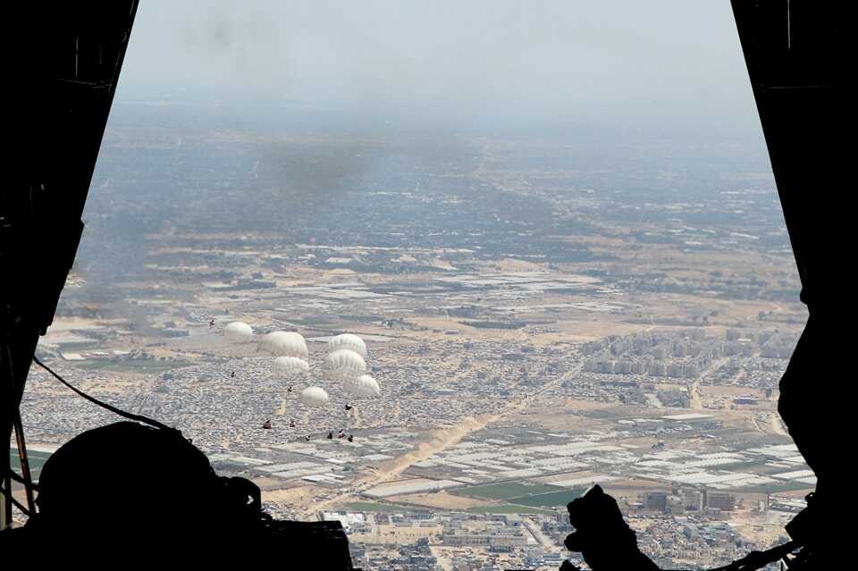 القوات المسلحة الأردنية تنفذ إنزالين جويين لمساعدات على جنوب غزة بمشاركة دولية .. صور