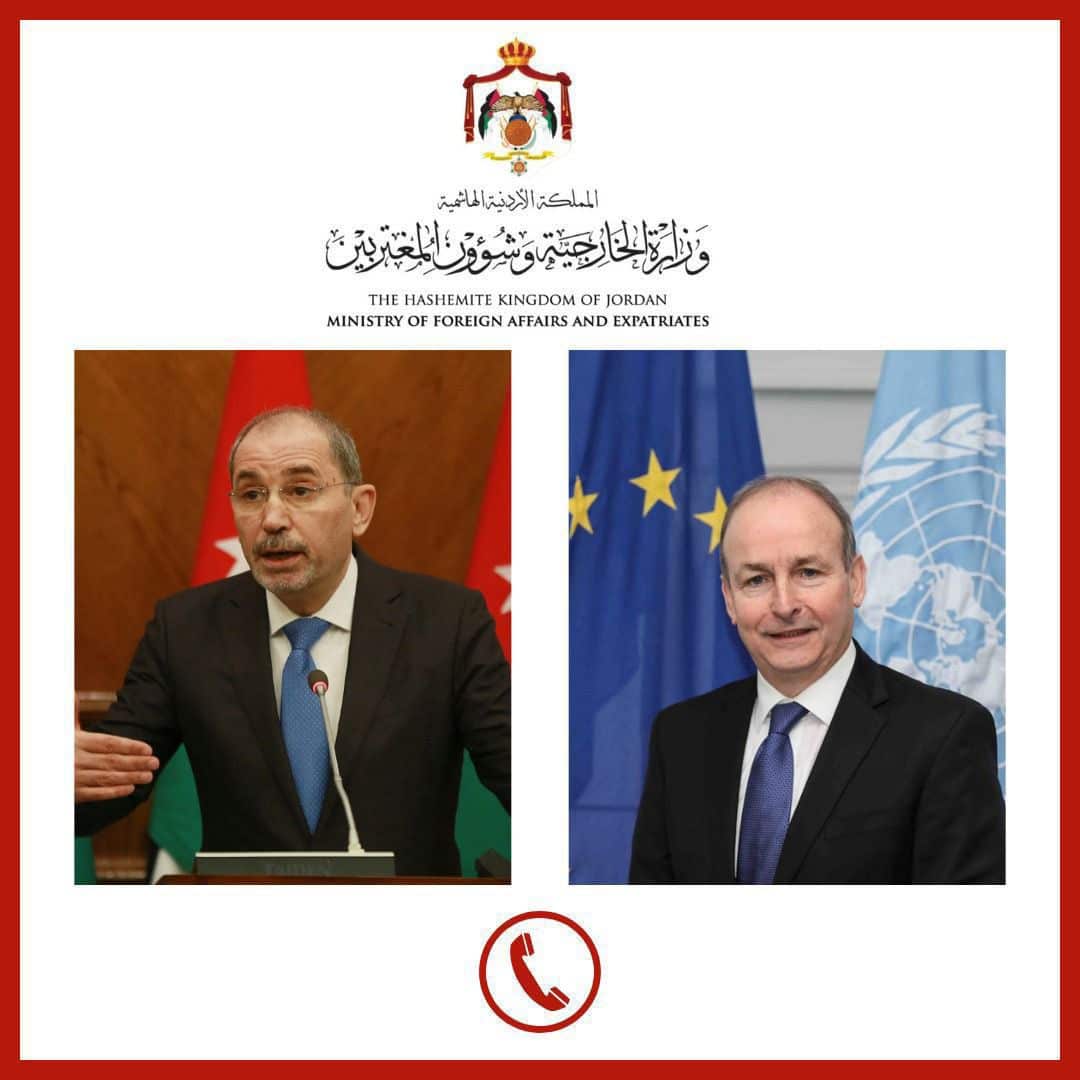 وثمن الصفدي مواقف إيرلندا الواضحة في الدعوة إلى وقف العدوان على غزة، واعترافها بالدولة الفلسطينية، ووقوفها إلى جانب حق الشعب الفلسطيني في الحرية والدولة على أساس حل الدولتين ووفق القانون الدولي.