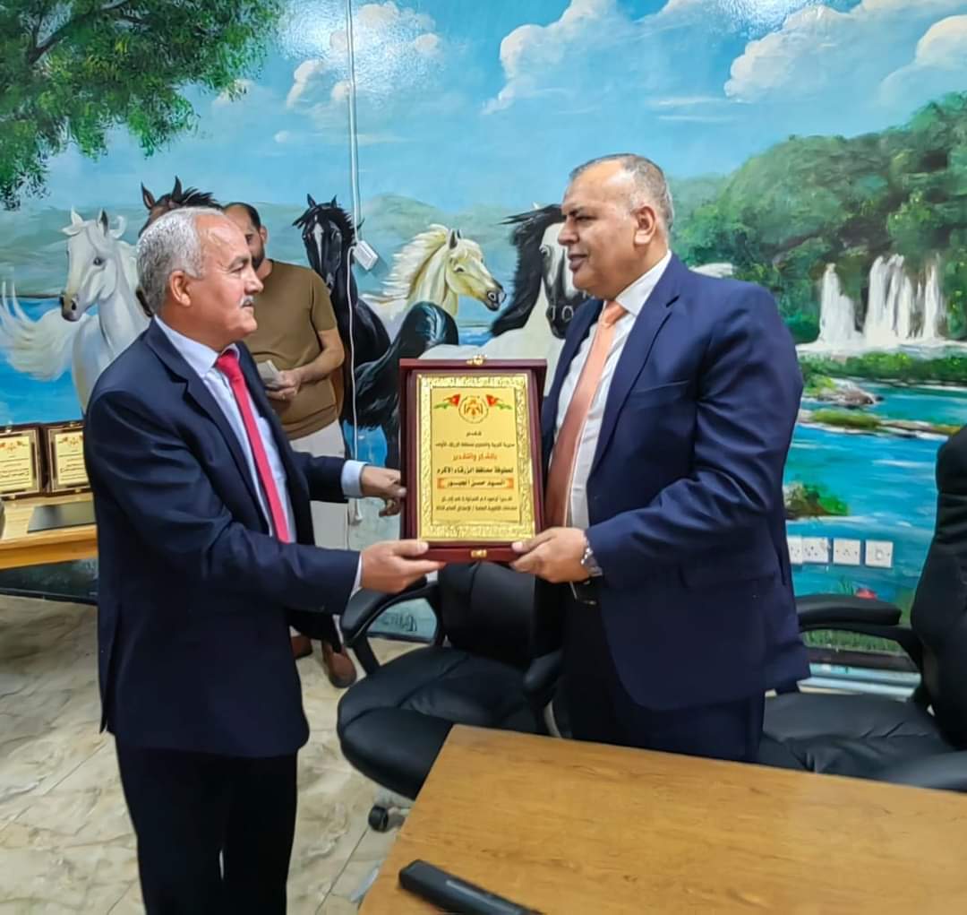بدوره قام الدكتور أسامه شديفات بتكريم محافظ الزرقاء، شاكرا جهوده الداعمه لإجراءات الأسرة التربوية في إنجاح العملية التعليمية والتربوية.