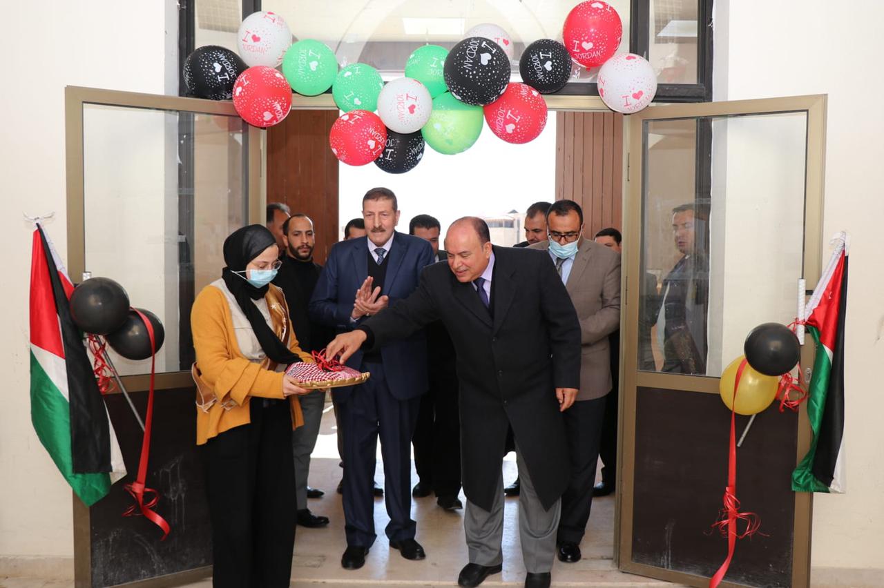 وتخلل الاحتفال افتتاح المعرض الذي اقيم من قبل عمادة شؤون الطلبة لابراز التطور الذي شهدته المملكة في عهد جلالة الملك.