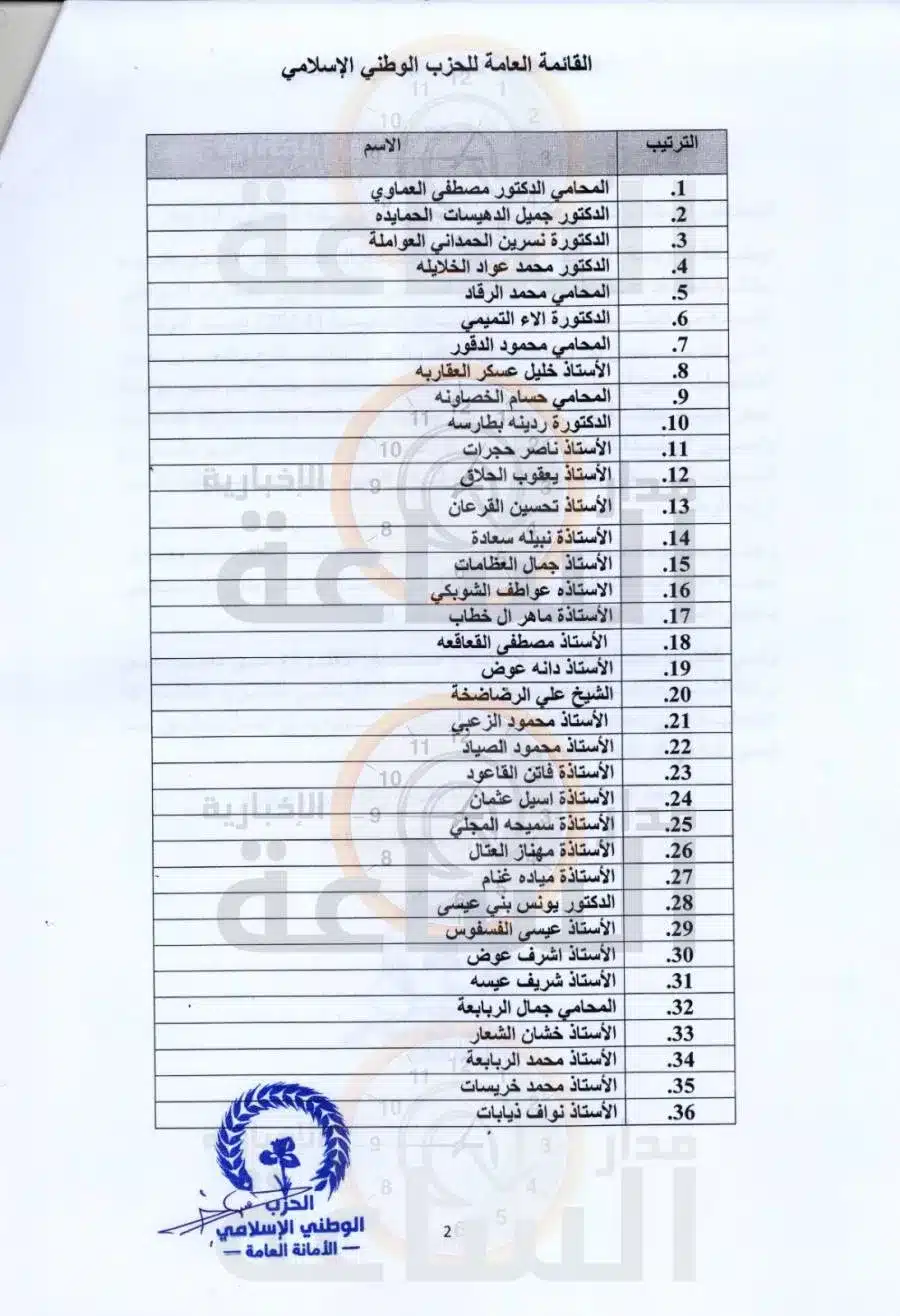 22الاعلامي- الحزب الوطني الإسلامي يعلن قائمته العامة بـ 36 مرشحاً