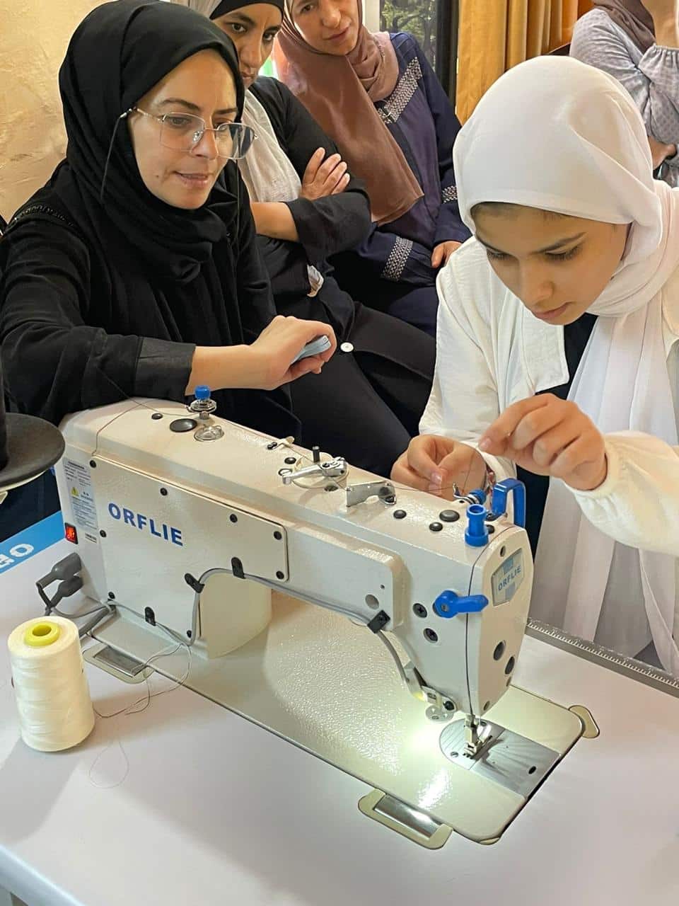 حيث قامت المدربة سائدة عبدالقادر عبيدات بتعريف المشاركات بأساسيات الخياطة، والأدوات اللازمة المستخدمة في خياطة الملابس وكيفية أخذ القياسات، و الحديث حول فكرة إعادة التدوير والإستفادة من قطع القماش الموجودة في المنازل، وتحويلها إلى مواد يستفاد منها في الحياة اليومية.
