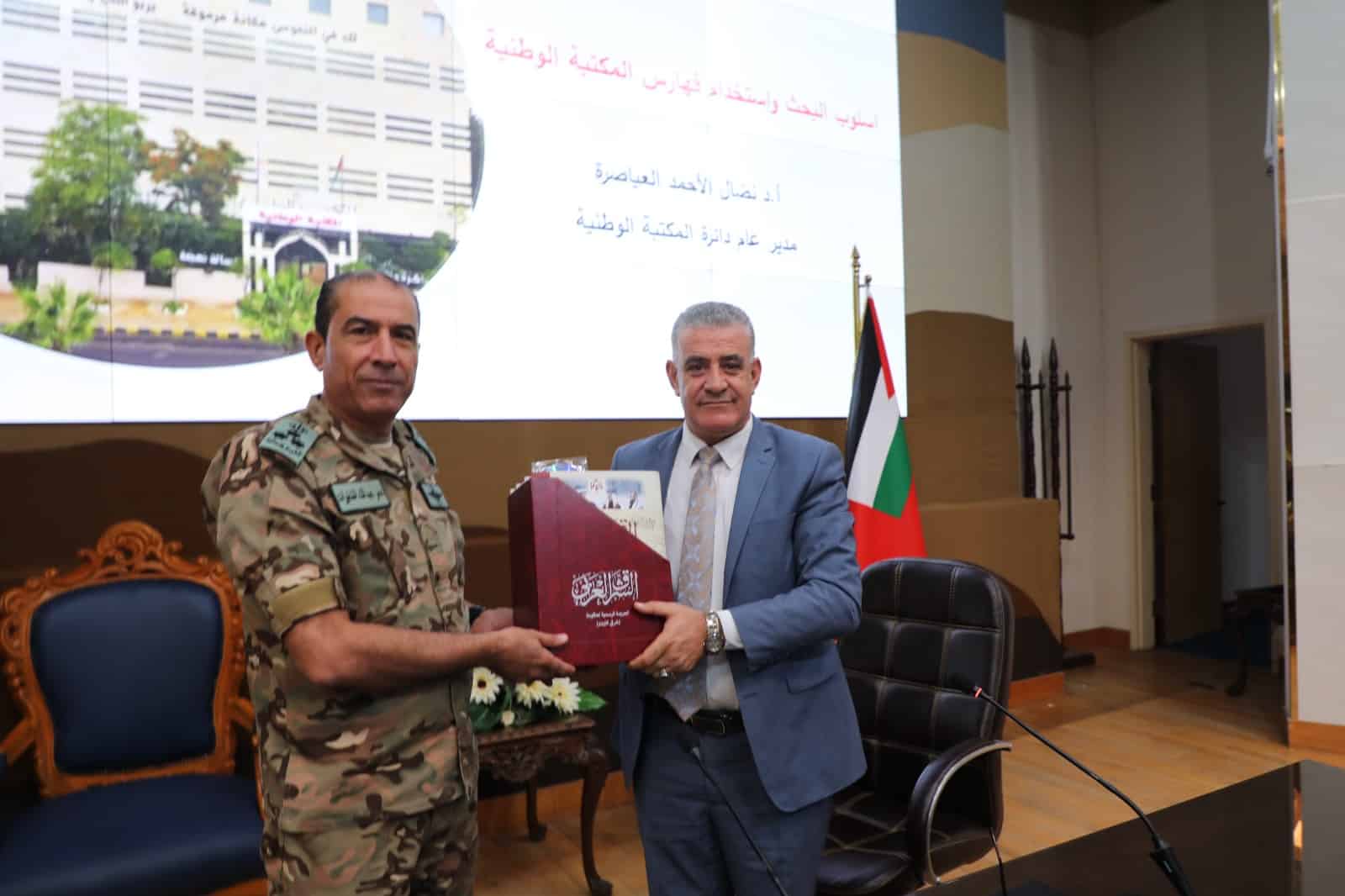 22 الاعلامي- حاضرمدير عام دائرة المكتبة الوطنية الاستاذ الدكتور نضال الاحمد العياصرة اليوم الأحد 11/8/2024 في كلية القيادة والأركان حول " اسلوب البحث واستخدام فهارس المكتبة الوطنية" لطلاب دورة القيادة والأركان 65 المشتركة 29 .