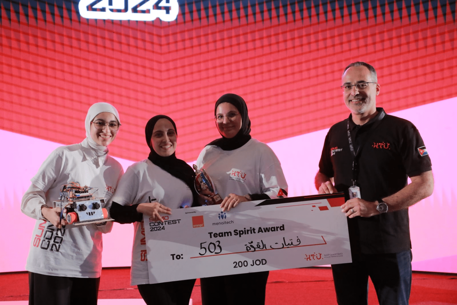 ومثل فريق The Jousters 523 الطالب عبدالرحمن القواسمي، عامر المجالي، وماجد جمال ، وممثلي فريق فتيات القوة الطالبة ريماز الضمور، رند عابدين ، روان ابو خلف.