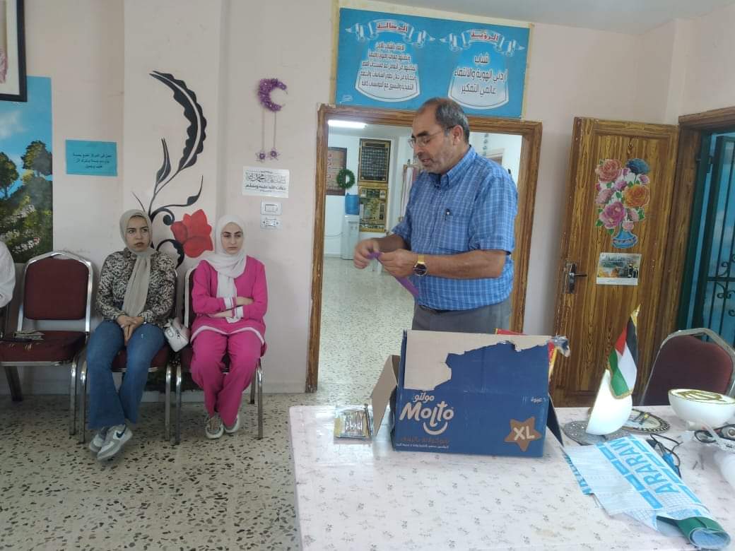 أشار خلالها المدرب فتحي المومني إلى كيفية رسم التصميم على الفلين باستخدام قلم الرصاص، والتأكيد على التفاصيل التي يجب أن تُحدد في الرسم بالضغط على الرسم بقوة ، وأشار إلى كيفية استخدام عجلة التلوين على الرسم باللون المرغوب .