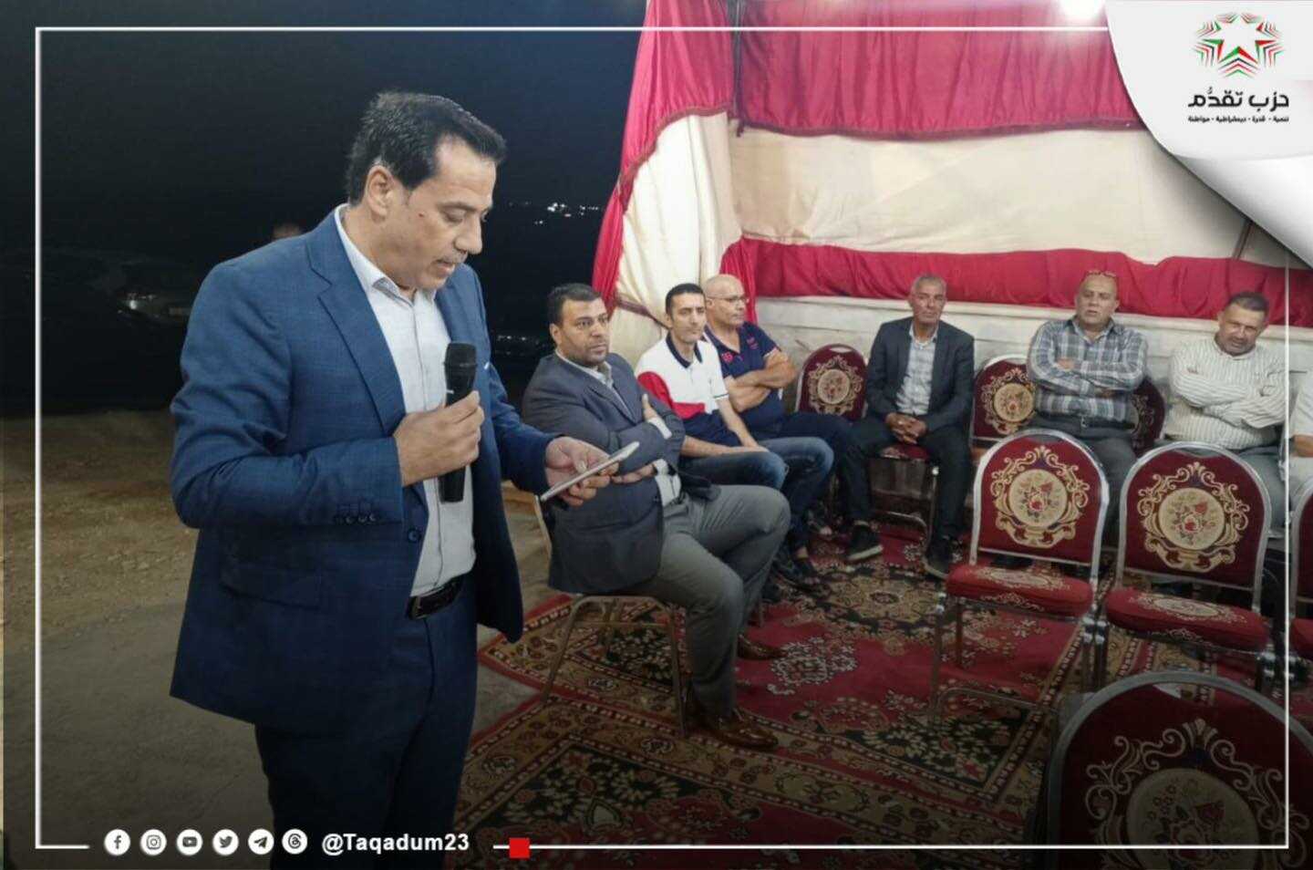 من جانبه، عرض المترشح الخصاونة رؤية الحزب في معالجة القضايا في جميع القطاعات، مشددًا على أهمية الشراكة مع القطاع الخاص لإنشاء مشاريع تنموية تسهم في حل مشكلتي الفقر والبطالة في المحافظات.