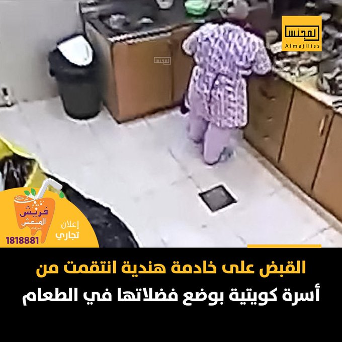 وأفادت صحيفة "المجلس" الإلكترونية، على حسابها في "تويتر": "تم القبض على خادمة هندية انتقمت من أسرة كويتية بوضع فضلاتها في الطعام لمدة عام".