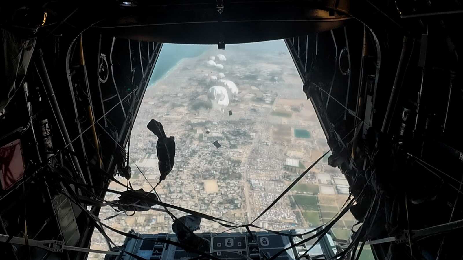 القوات المسلحة تنفذ إنزالين جويين لمساعدات إنسانية على قطاع غزة .. صور
