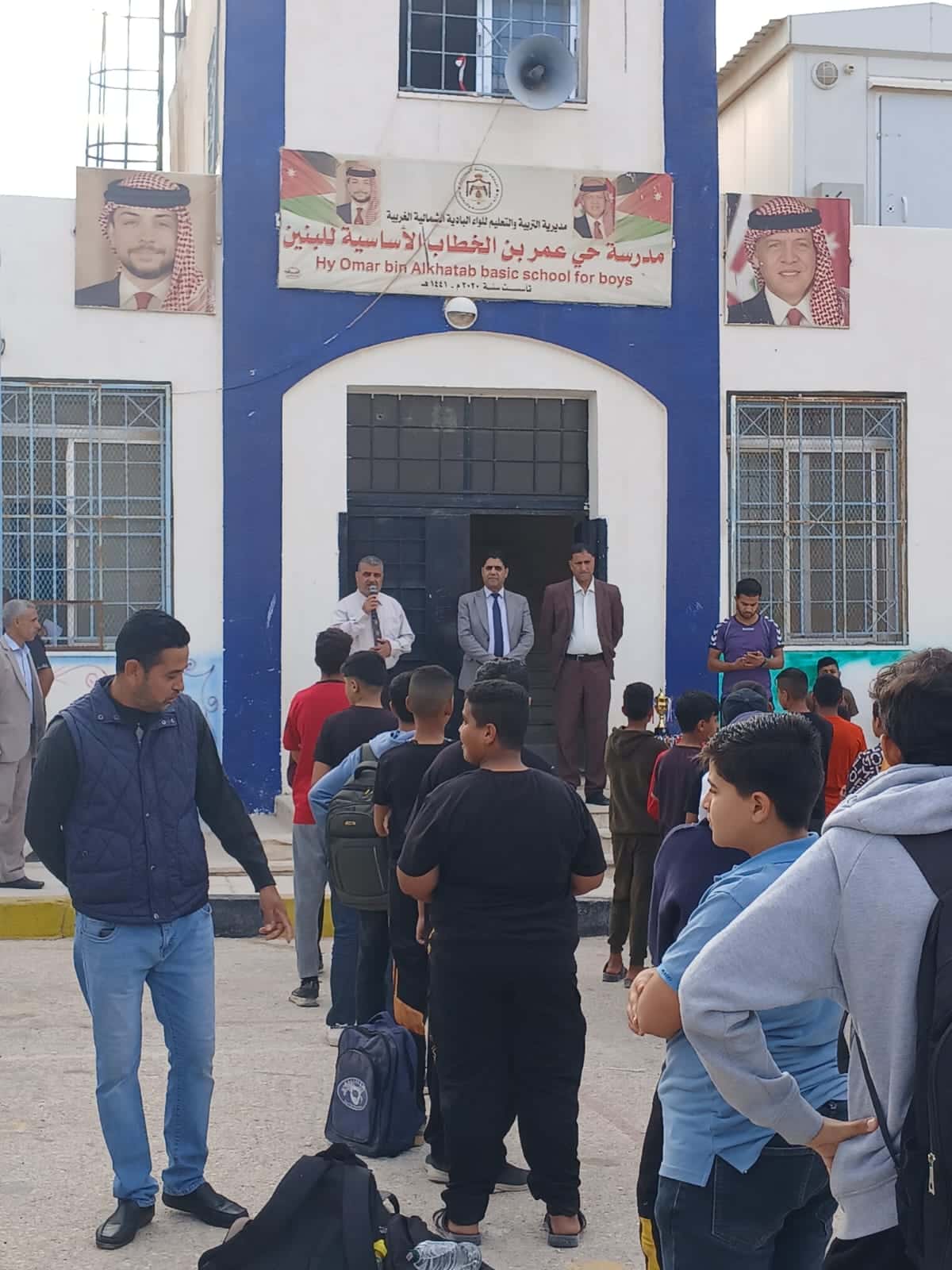 واستهل مدير التربية والتعليم جولته التفقدية بمشاركة طلبة مدرسة حي عمر بن الخطاب الاساسية للبنين، فعاليات الطابور الصباحي ورفع العلم، بحضور رئيس قسم الاشراف الدكتور ابراهيم شديفات .