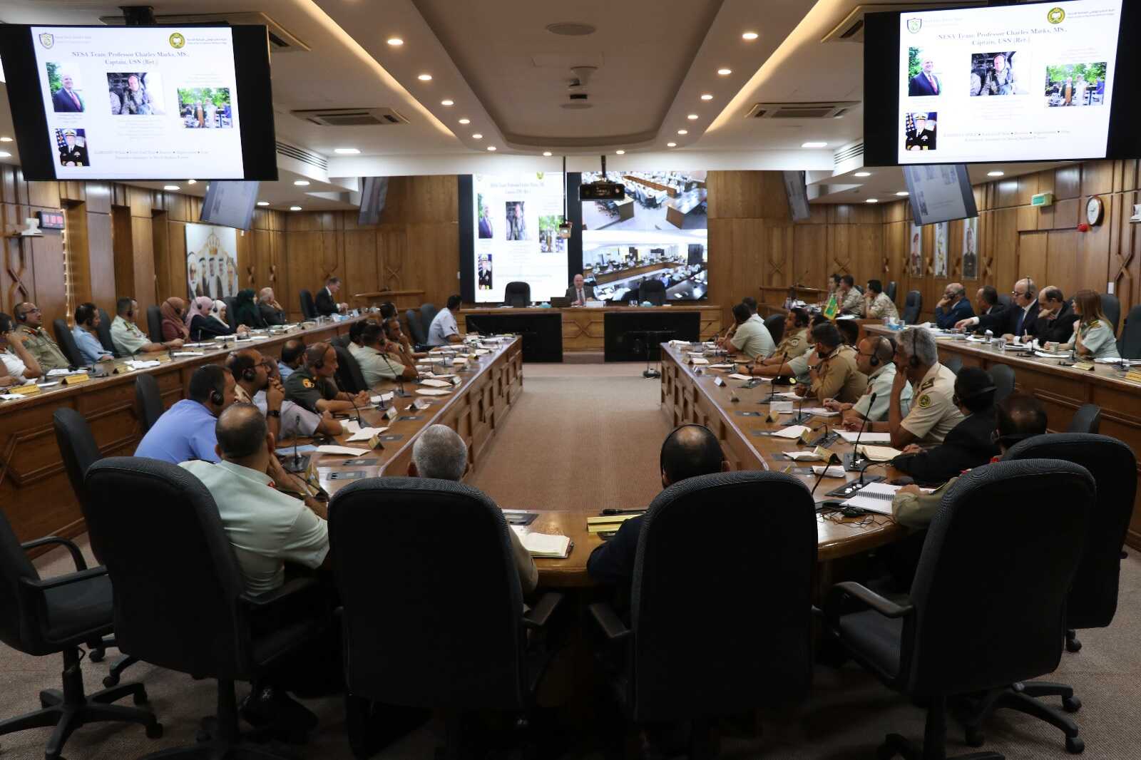 22 الاعلامي - افتتحت في كلية الدفاع الوطني الملكية الاردنية اليوم الأحد، دورة تدريبية بعنوان: "اراء حول الاستراتيجية لكبار القادة"، بالتعاون مع مركز الشرق الأدنى وجنوب اسيا للدراسات الاستراتيجية (NESA)التابع لوزارة الدفاع الامريكية في إطار التعاون الأردني الأمريكي لتطوير القدرات الاستراتيجية، للدارسين في دورة الدفاع الوطني 22، بحضور آمر الكلية وأعضاء هيئة التوجيه. وتهدف الدورة التدريبية المقدمة من مركز الشرق الأدنى وجنوب اسيا للدراسات الاستراتيجية برئاسة البروفيسور (ريتشارد ويرسما) الى تقديم نظرة عامة عن القيادة والتخطيط الاستراتيجي وتعريف الدارسين على أفضل الممارسات التي تقدم في التعليم العسكري المهني إضافة الى تدريبهم على موضوعات القيادة الاستراتيجية والتفكير الاستراتيجي والقرار الاستراتيجي وملامح حروب المستقبل ودراسة الفرضيات التي تساعد في بناء الاستراتيجيات.يشار الى أن مركز الشرق الأدنى للدراسات الاستراتيجية(NESA)، يعمل على عقد دورات تعليمية بالتشارك مع مؤسسات تعليمية مدنية وعسكرية.