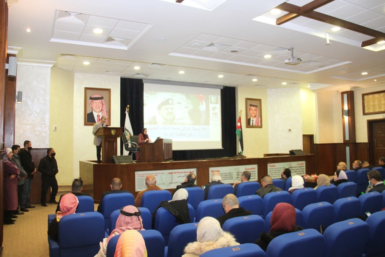 مندوبا عن رئيس جامعة البلقاء التطبيقية الأستاذ الدكتور احمد فخري العجلوني رعى نائب الرئيس لشؤون الكليات مدير وحدة التنمية وخدمة المجتمع المحلي الأستاذ الدكتور ناصر كلوب الاحتفالية التي نظمتها وحدة التنمية وخدمة المجتمع المحلي في الجامعة بمناسبة ذكرى الكرامة الخالدة ويوم الأم حاضر فيها الدكتور عمر الجازي رئيس مجلس أمناء جامعة عمان العربية وزهراب المصور الشخصي للمغفور له الملك الحسين بن طلال طيب الله ثراه، بحضور عدد من أعضاء الهيئة التدريسية والإدارية وطلبة الجامعة.