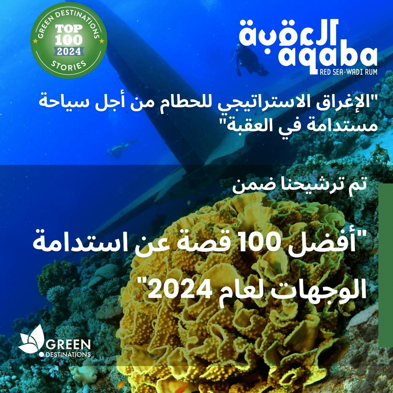 فازت سلطة منطقة العقبة الاقتصادية الخاصة في مسابقة "أفضل 100 قصة من الوجهات الخضراء" للمرة الثانية على التوالي والتي تسلط الضوء على المبادرات والمشاريع المبتكرة الهادفة إلى تطوير السياحة المستدامة.