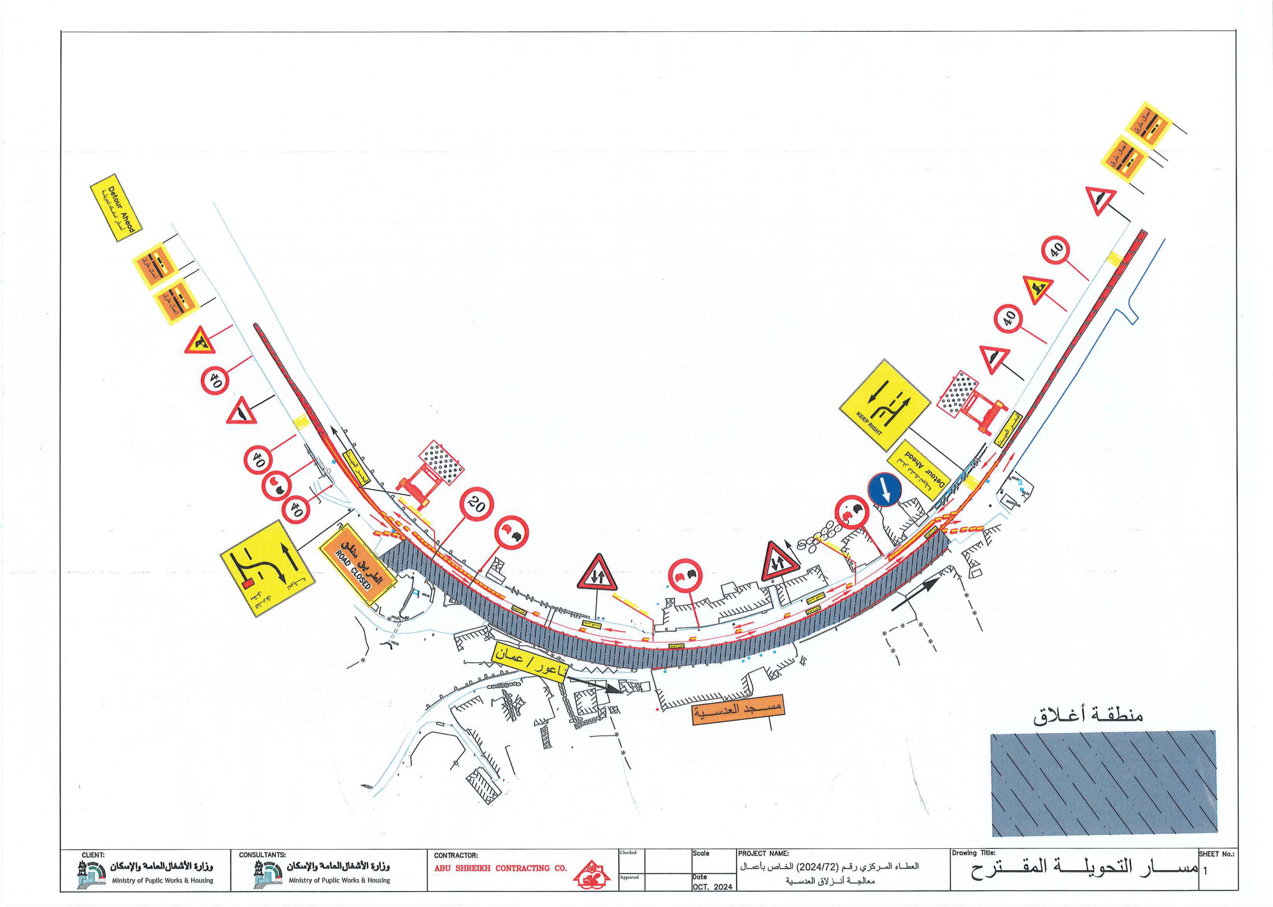 وأشارت إلى أنها ستقوم بإجراء تحويلات جزئية في الموقع، حيث سيتم فصل واستخدام المسرب القادم من عمان باتجاه البحر الميت بحيث يكون باتجاهين مفصولين بحواجز خرسانية وعلى طول منطقة العمل "المنطقة المقابلة لمسجد العدسية والنبعات"، وسيتم أغلاق المسرب القادم من البحر الميت وباتجاه عمان " عند منطقة العمل" وتحويله مع المسرب المفصول من الاتجاه القادم من عمان.