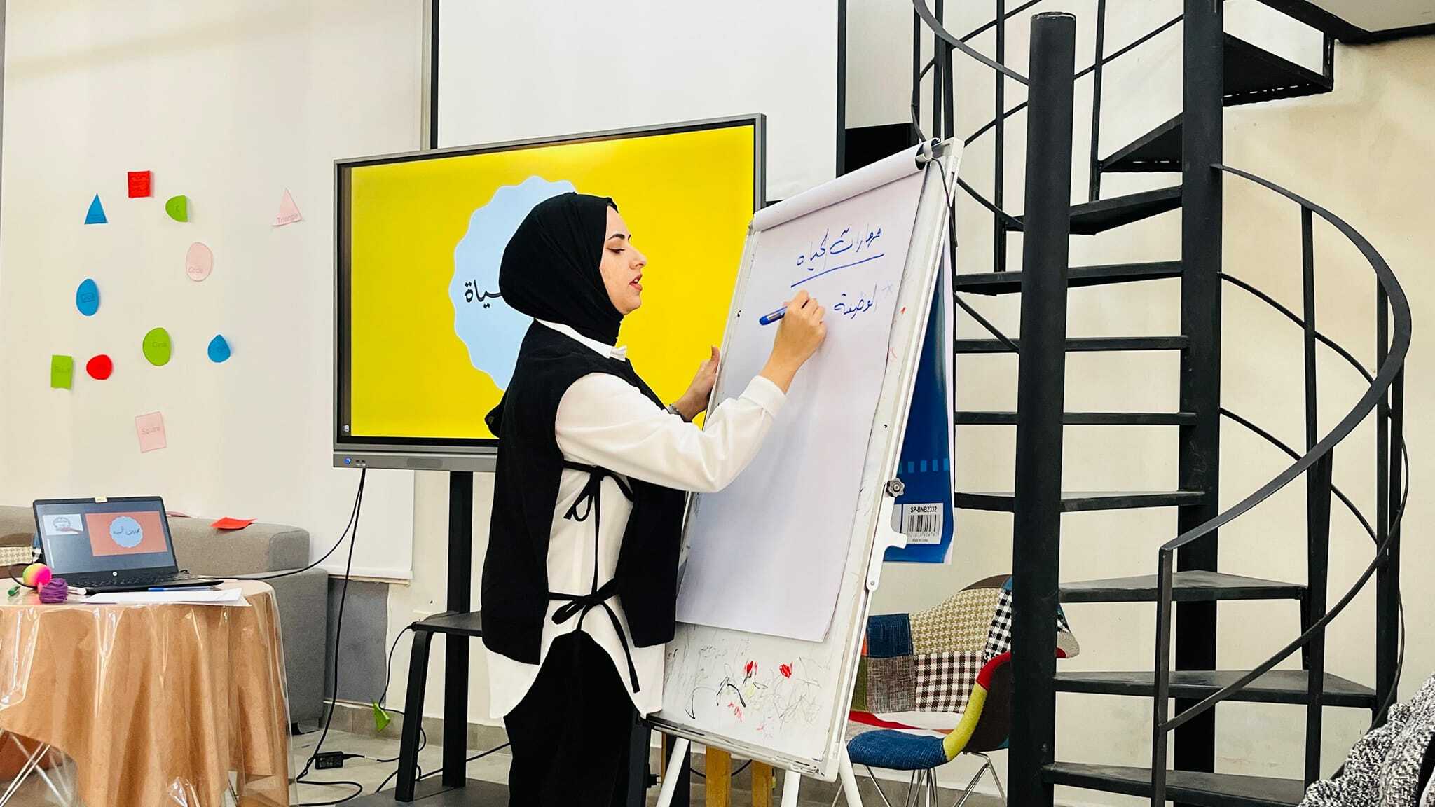 وقدمت المدربة عبير شويات تعريفاً بمفهوم مهارات الحوار وأهميتها في حياتنا اليومية، كما أوضحت كيفية تنفيذ تمارين كسر الجمود والأنشطة التفاعلية لإيصال مفاهيم الاتصال وأنواعه.