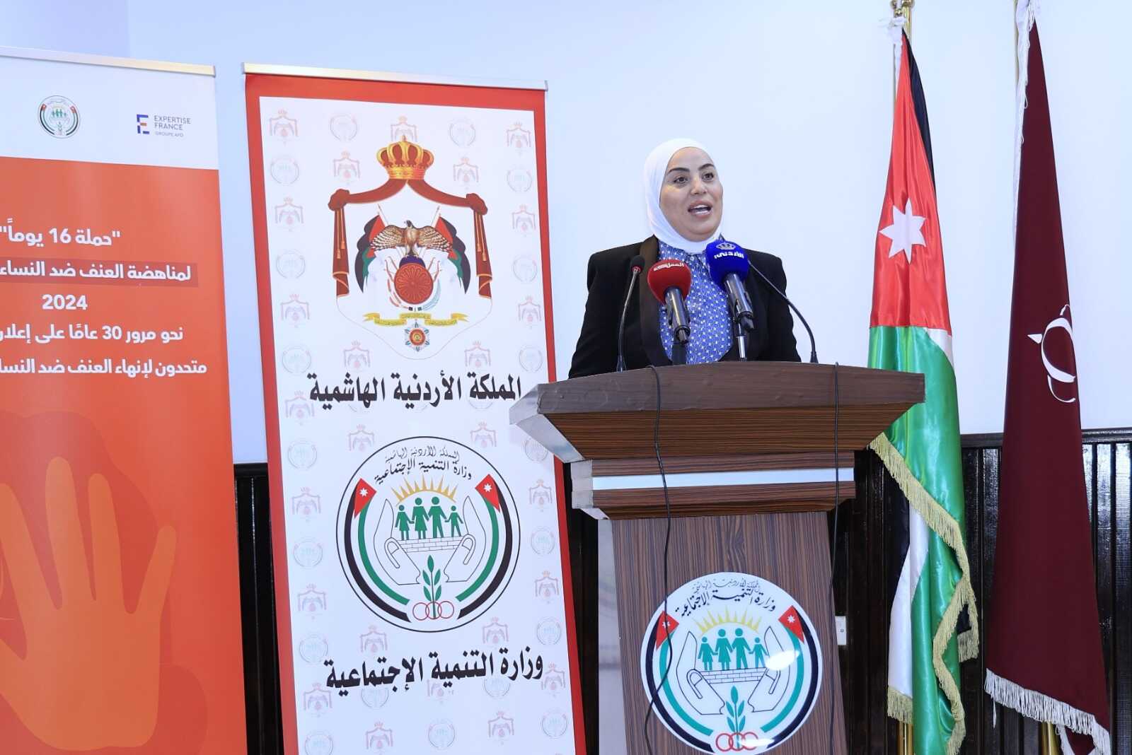 22 الاعلامي - رعت وزيرة التنمية الاجتماعية رئيسة اللجنة الوزارية لتمكين المرأة وفاء بني مصطفى، اليوم الإثنين، احتفالية الوزارة بحملة الـ 16 يوم لمناهضة العنف ضد المرأة والفتاة، بحضور عدد من القيادات النسائية وممثلي مؤسسات المجتمع المدني.