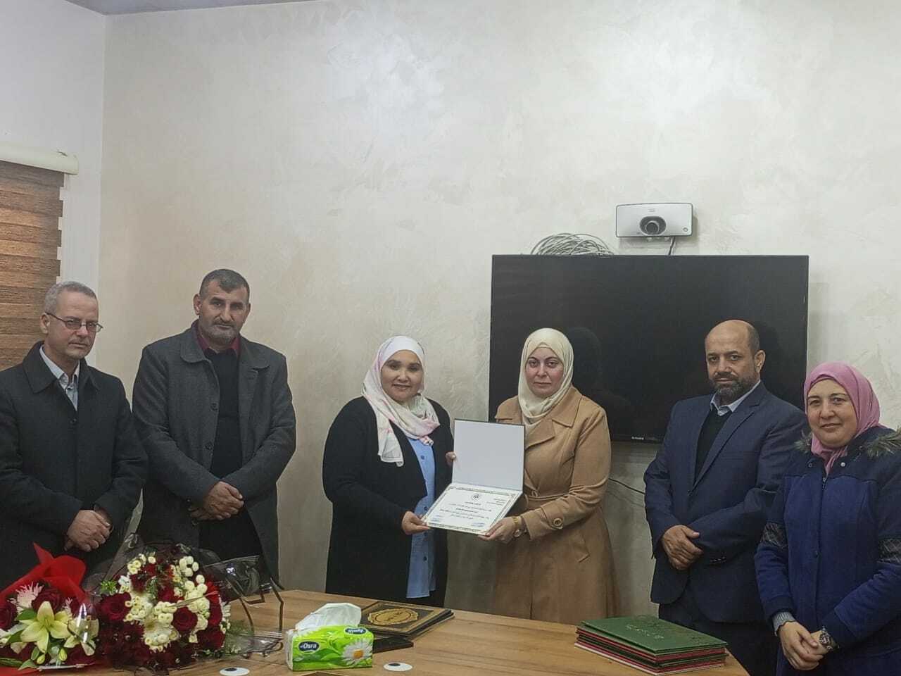بحضور مدير الشؤون التعليمية الدكتور ابراهيم كنعان، ومدير الشؤون الإدارية والمالية السيد ايمن النصيرات، ورئيس قسم الاشراف التربوي السيد مالك خصاونة، ورئيس قسم الاعلام محمد قواسمه، ومنسقة الجائزة المشرفة التربوية الدكتورة نهى العتوم، ومديرات ومعلمات المدارس الفائزة.