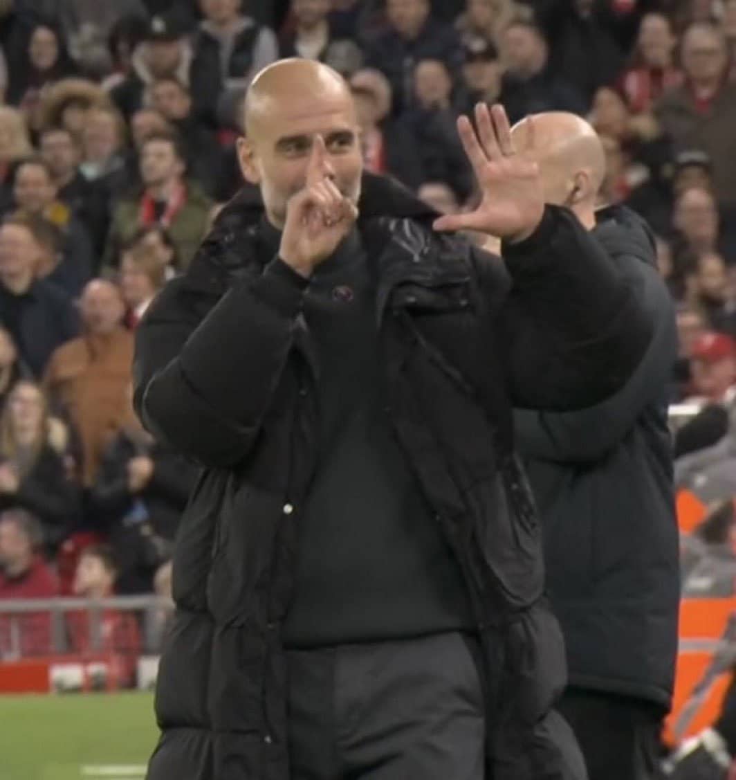 The moment pep Guardiola responded to Liverpool fans singing to him “You’re getting sacked in the morning”