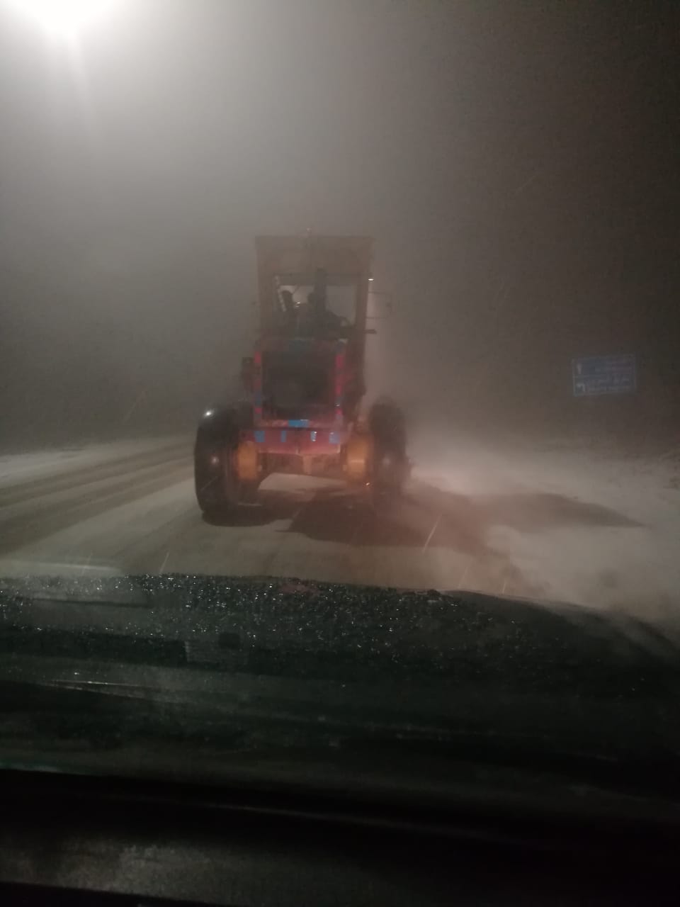 آليات وزارة الاشغال العامة و الاسكان تواصل عملها بالتعامل مع تراكمات الثلوج الخفيفه في محافظة الطفيلة
