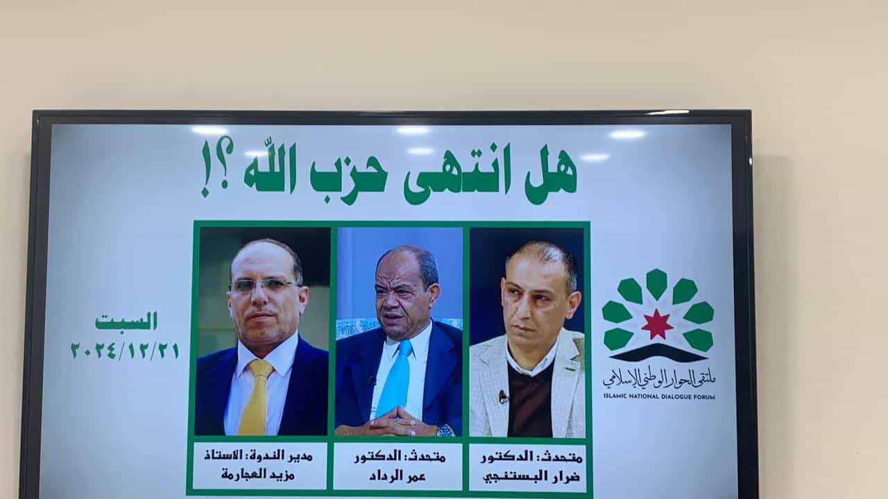 22 الاعلامي - كعادته في تنظيم الندوات الهامة التي تواكب الأحداث، عقد ملتقى الحوار الوطني الإسلامي اليوم، السبت 21-12-2024، ندوة سياسية بعنوان "هل انتهى حزب الله؟"