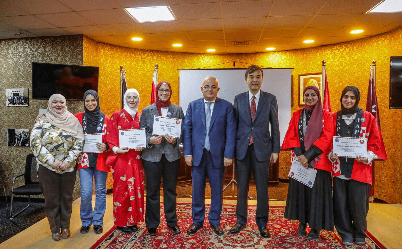 وكرم رئيس الجامعة الطلبة الذين كان لهم دور في فاعليات اللغة اليابانية خلال العام الدراسي 2024 المركز الاول في مسابقة الخطابة في اللغة اليابانية على مستوى المملكة، والطلبة الذين اجتازوا امتحان الكفاءة باللغة اليابانية.