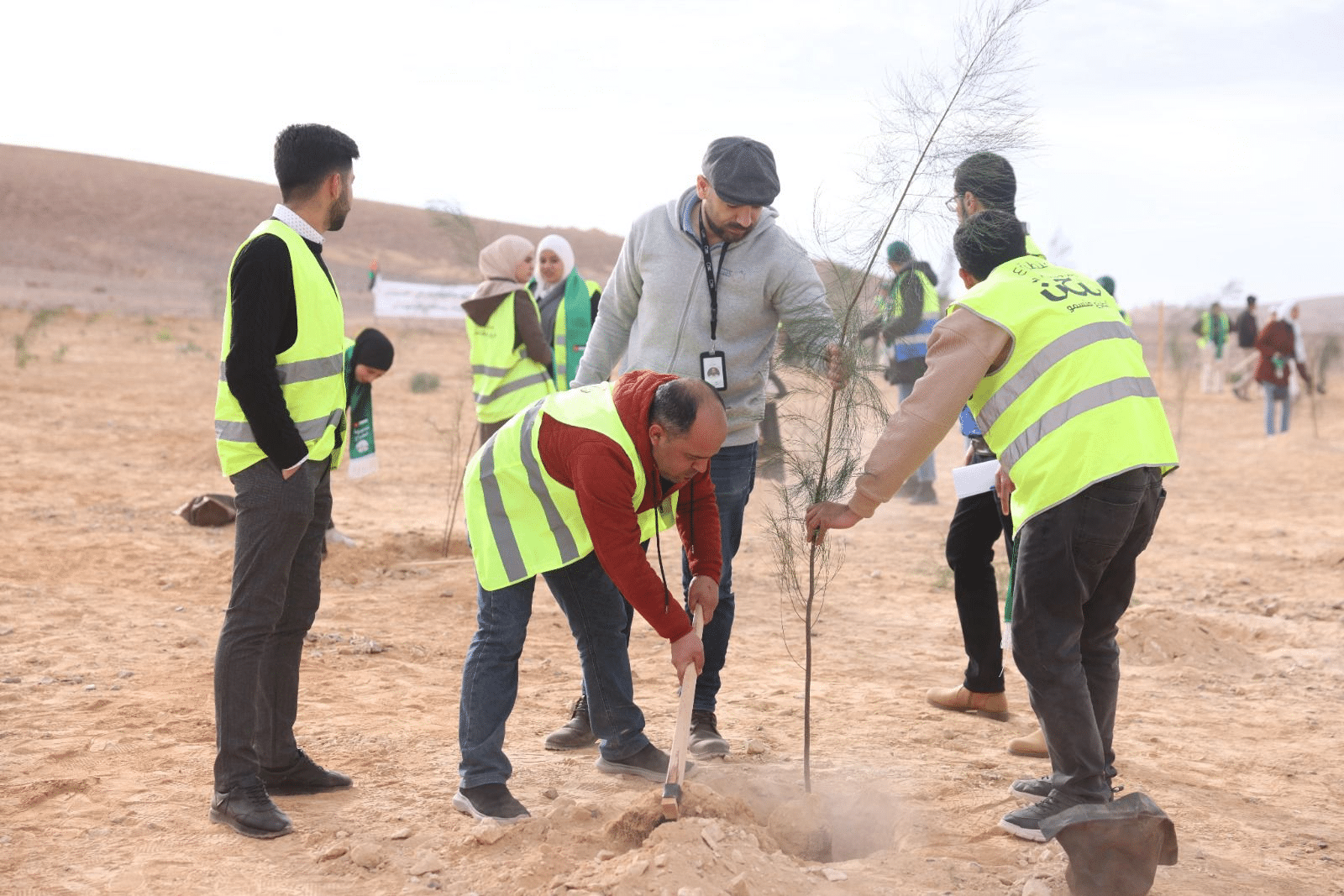وشارك رئيس الوزراء، بحضور وزير الزراعة المهندس خالد الحنيفات، قُرابة مئتيّ شاب وشابَّة من محافظة معان بزراعة الأشجار في كليَّة معان الجامعيَّة، وذلك في إطار سعي الحكومة لزيادة الرقعة الحرجية والمساحات الخضراء لمواجهة التصحر.