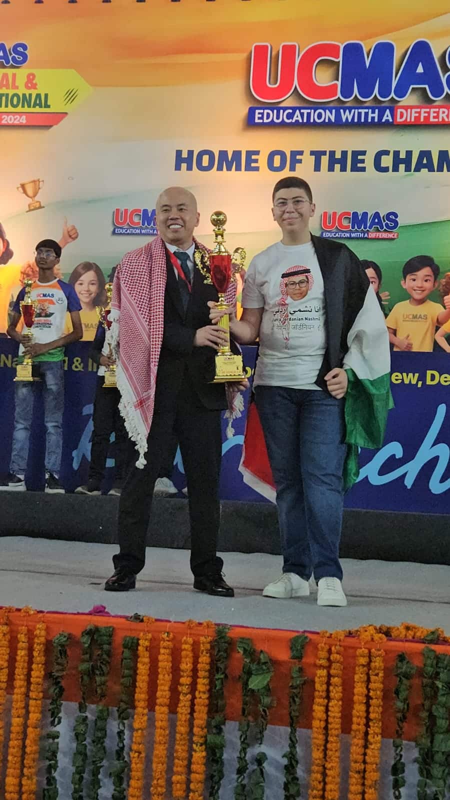 22الاعلامي- أعرب مدير التربية والتعليم لمنطقة الزرقاء الأولى الدكتور أسامة عايد شديفات، عن فخره واعتزازه بالإنجاز الذي حققه الطالب راكان أحمد سليمان من مدارس الملك عبدالله الثاني للتميز/ الزرقاء، بعد حصوله على المركز الأول على مستوى العالم في مسابقة الحساب الذهني التي أُقيمت في الهند بمشاركة اكثر من 6000 مشارك ومشاركة من أكثر من 30 دولة حول العالم.