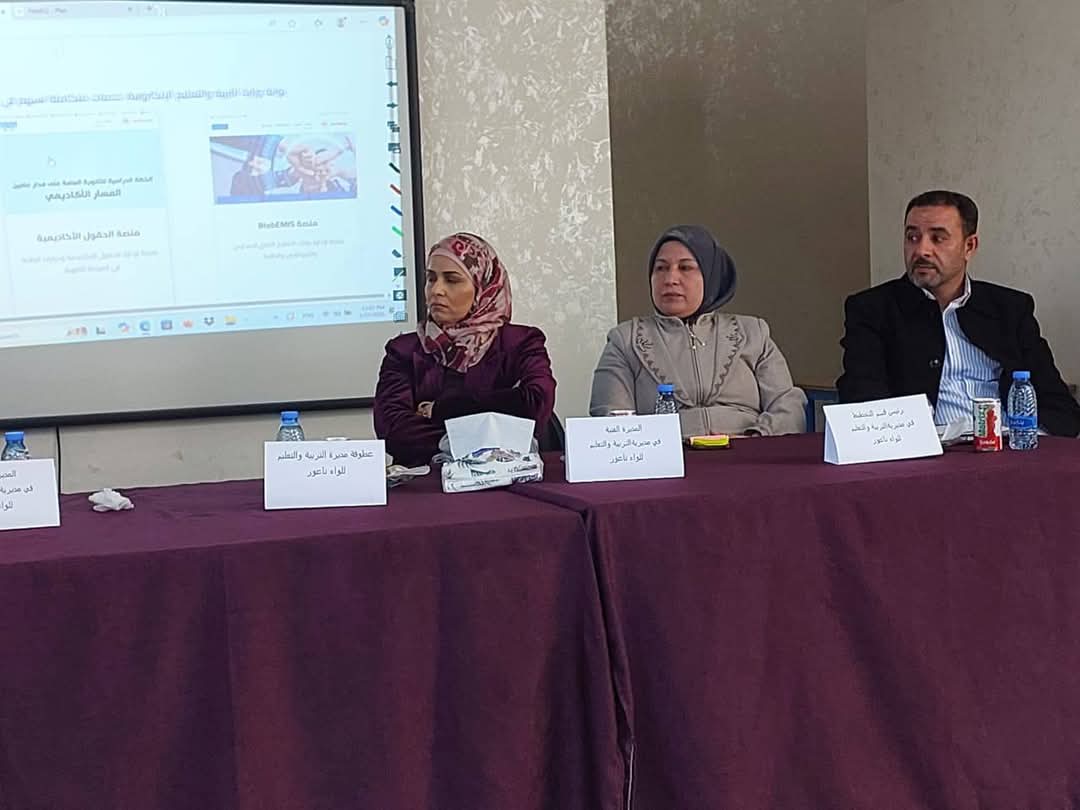 اجتماعا بمديري ومديرات المدارس الحكومية والخاصةوقيمي الحاسوب، بحضور المديرين المختصين، وذلك في مدرسة خولة بنت الأزور الثانوية المختلطة، لبحث آلية عمل منصة توزيع طلبة الصف الحادي عشر الأكاديمي على الحقول الستة.
