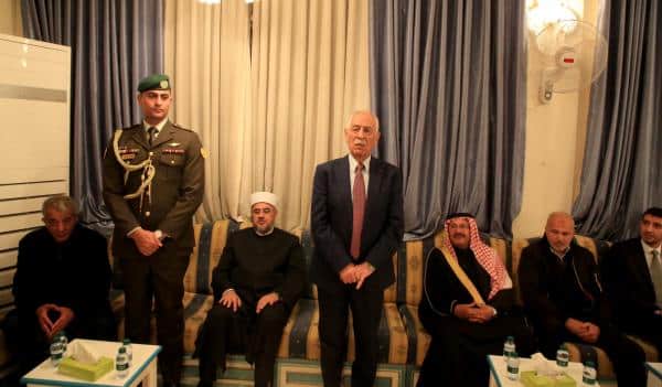 كما قدم واجب العزاء مستشار جلالة الملك لشؤون العشائر كنيعان البلوي وإمام الحضرة الهاشمية الدكتور أحمد الخلايلة.