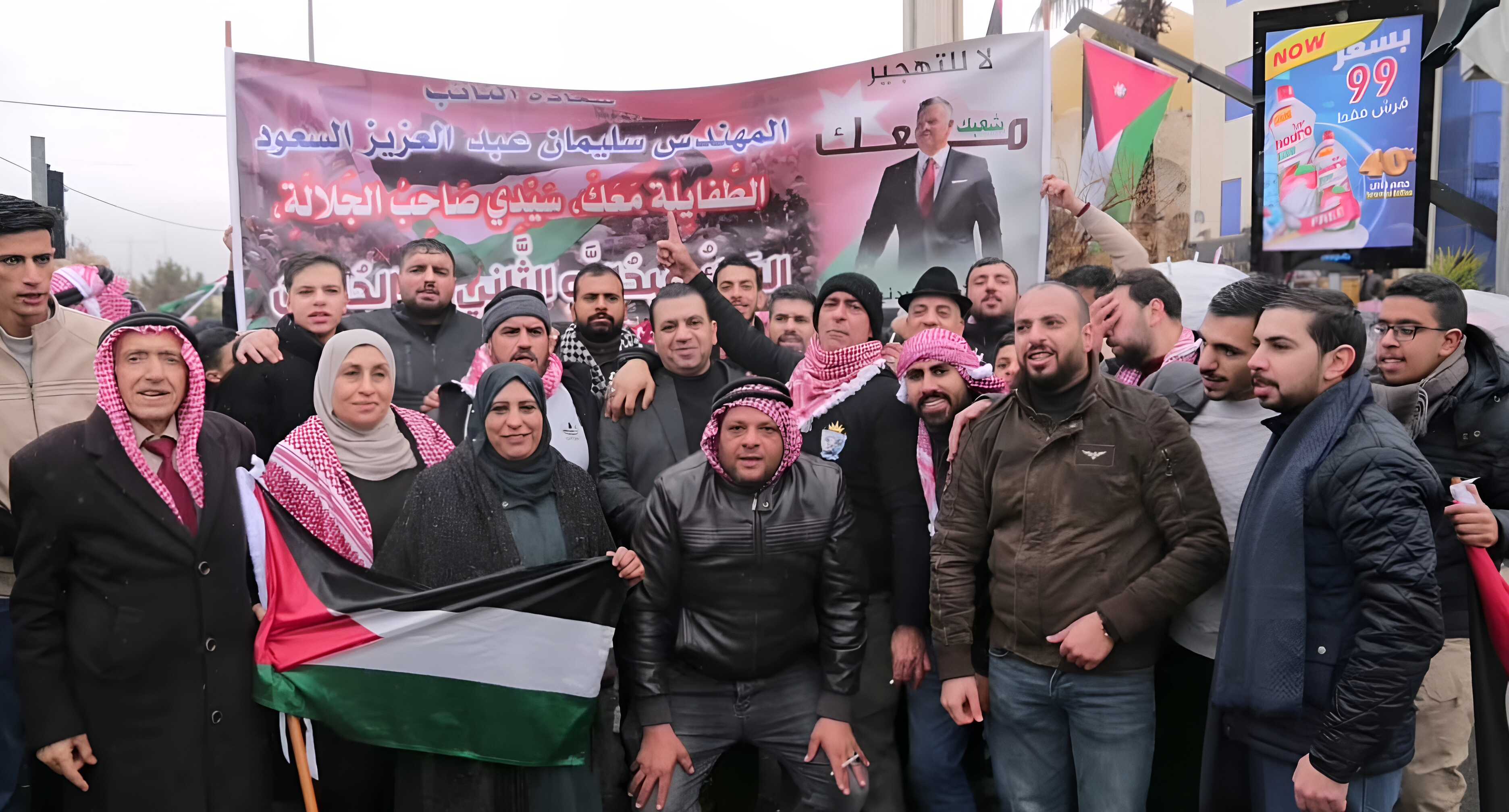 22 الاعلامي - أبناء الوطن من حي الطفايلة بقيادة النائب (م. سليمان عبدالعزيز السعود) ينتفضون في وجه الدعوات الامريكية الصهيونية لتصفية القضية الفلسطينية على حساب الأردن.