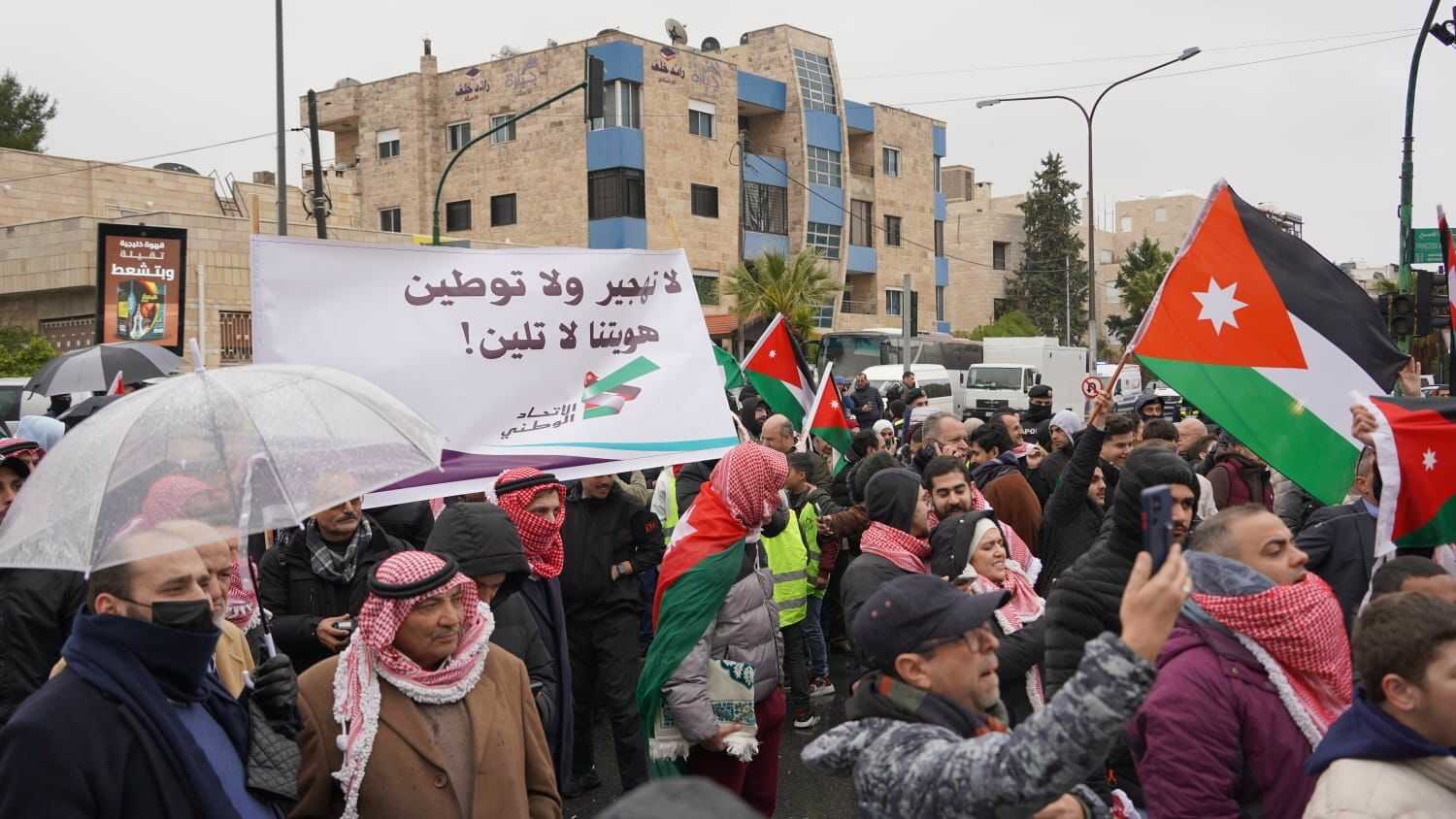 وشهدت الوقفة حضوراً واسعاً من مختلف الفعاليات الشعبية والحزبية، حيث رفع المشاركون الأعلام الأردنية، مجددين التأكيد على موقف الأردن الثابت في رفض أي مشاريع تستهدف تهجير الفلسطينيين أو تصفية قضيتهم، ومشددين على أن الأردنيين يقفون صفاً واحداً خلف الملك في الدفاع عن القضية الفلسطينية وحماية الهوية الوطنية الأردنية.