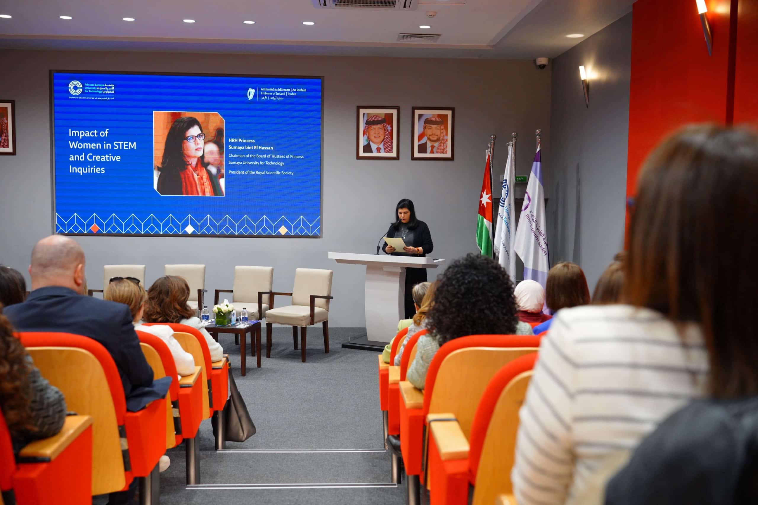 رعت سمو الأميرة سمية بنت الحسن، رئيس مجلس أمناء جامعة الأميرة سمية للتكنولوجيا، انعقاد فعالية "تأثير المرأة في مجالات العلوم والتكنولوجيا والهندسة والرياضيات والاستفسارات الإبداعية"، والتي نُظمت بالتعاون بين جامعة الأميرة سمية للتكنولوجيا والسفارة الايرلندية في الأردن.