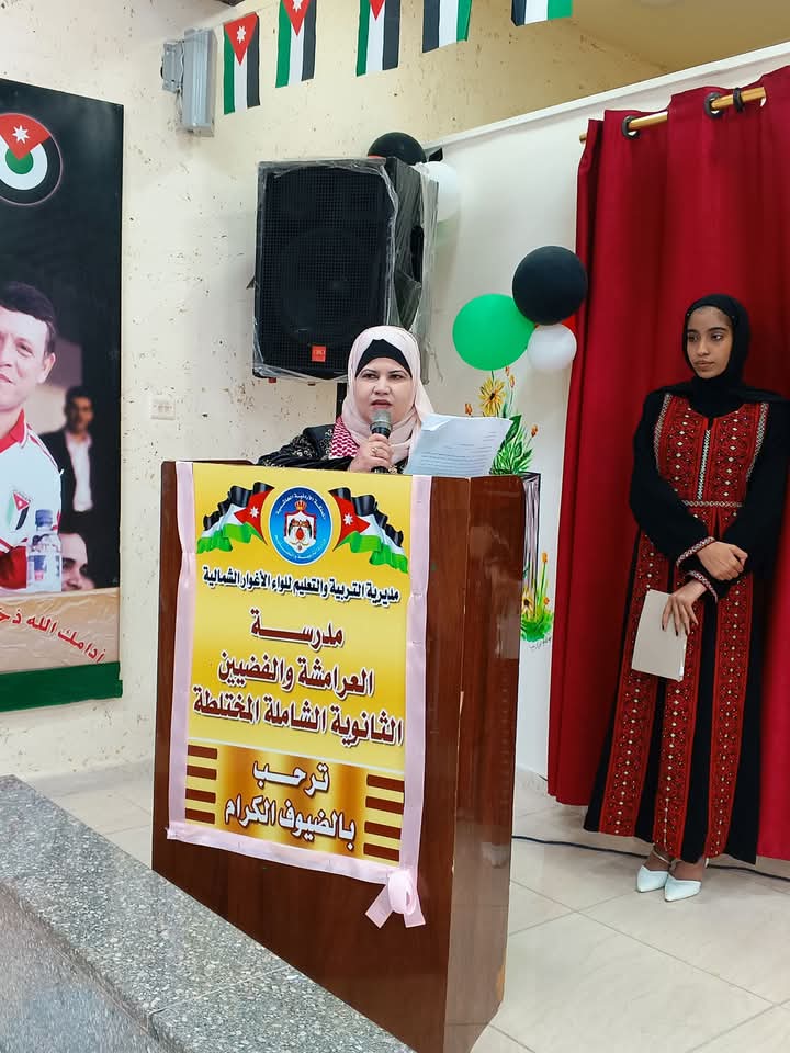 22 الاعلامي - رعى مدير التربية والتعليم للواء الأغوار الشمالية الدكتور مالك العمايرة ، الاحتفال الذي نظمته مديرية التربية والتعليم احتفالاً بعيد ميلاد جلالة الملك عبدالله الثاني بن الحسين المعظم صباح اليوم الاحد ، على مسرح مدرسة العرامشة والفضيين الثانوية المختلطة .