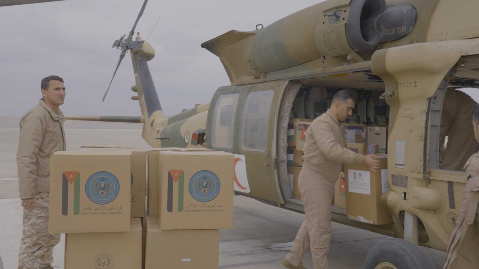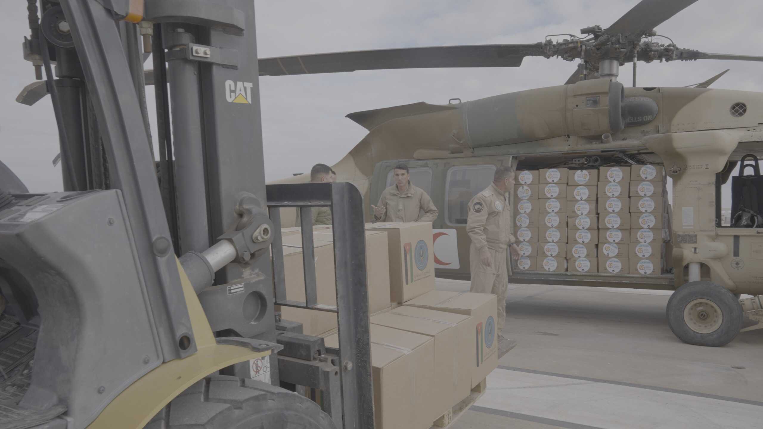 22 الاعلامي - شاركت في الجسر الجوي الإنساني اليوم الأحد 16 طائرة مروحية جديدة اقلعت من قاعدة الملك عبدالله الثاني الجوية، منها طائرتان من دولة إيطاليا الصديقة. ونقلت الطائرات المشاركة على متنها ما يزيد عن 20 طناً من المساعدات الإنسانية والإغاثية ليصل الوزن الاجمالي الذي تم نقله الى قطاع غزة نحو 122 طن، بالتعاون مع الهيئة الخيرية الأردنية الهاشمية، وعدد من الدول الشقيقة والصديقة، وبلغ بذلك مجموع عدد الطائرات العامودية التي أرسلتها القوات المسلحة الأردنية 102 طائرة من ضمنها 11 طائرة إيطالية.