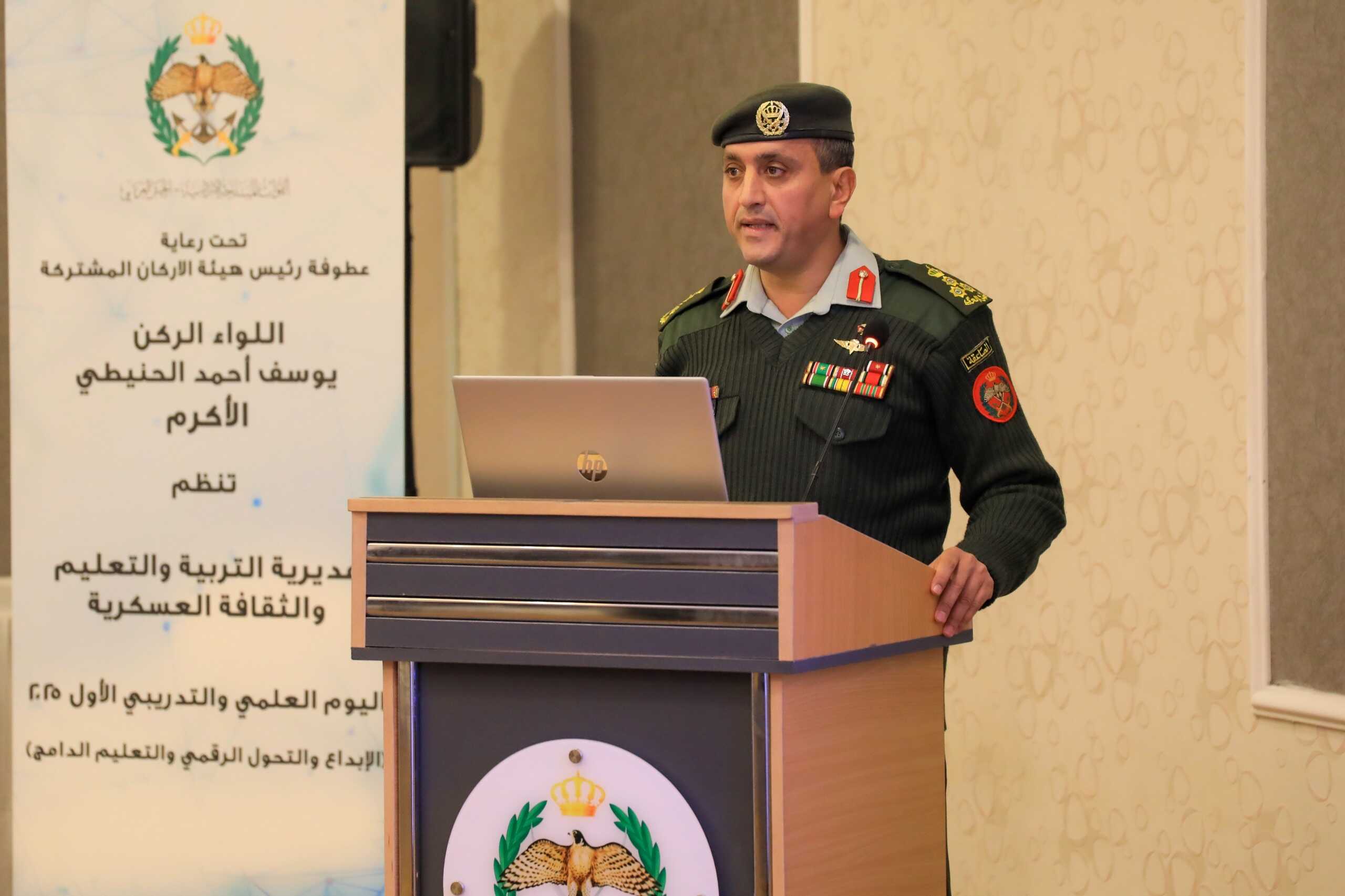 22 الاعلامي - رعى رئيس هيئة الأركان المشتركة اللواء الركن يوسف احمد الحنيطي اليوم الاثنين “اليوم العلمي والتدريبي الأول لمديرية التربية والتعليم والثقافة العسكرية تحت شعار الإبداع والتحول الرقمي والتعليم الدامج" في فندق القوات المسلحة بحضور رئيس جامعة الحسين التقنية، وأمين عام وزارة التربية والتعليم للشؤون التعليمية، وعدد من كبار ضباط القوات المسلحة الأردنية – الجيش العربي.وبدأ اليوم العلمي بالسلام الملكي، تلاه تلاوة آيات عطرة من الذكر الحكيم. واستمع اللواء الركن الحنيطي والحضور الى كلمة مدير التربية والتعليم والثقافة العسكرية أكد فيها أهمية هذا الحدث في تطوير العملية التعليمية ودور المديرية في دعم الابتكار والتحول الرقمي في التعليم، موضحاً أن مثل هذه الفعاليات تعد خطوة هامة نحو تحديث أساليب التعليم بما يتماشى مع التطورات التكنولوجية المعاصرة، وأن التحول الرقمي أصبح ضرورة حتمية في ظل التحديات المتسارعة التي يشهدها عالم اليوم لمواكبة التطورات التكنولوجية، وتعزيز جودة التعليم، وضمان وصوله إلى جميع الفئات دون استثناء.كما وشاهد الحضور "مادة فيلمية" قدمتها مديرية التربية والتعليم والثقافة العسكرية عن مشاريع الطلاب المبدعين وإنجازاتهم المختلفة، حيث سلط الضوء على كيفية استخدام الطلاب للتكنولوجيا والإبداع في مشاريعهم الدراسية وتحقيق نتائج متميزة باستخدام أدوات تعليمية حديثة ومتطورة.من جانبه تحدث مستشار الجامعة الألمانية عن التحديات التي تواجه المؤسسات الأكاديمية في ظل التطورات السريعة والتي تتطلب تضافر الجهود لتحديث المناهج التعليمية وتوظيف الذكاء الاصطناعي لتحسين التعليم، مؤكدًا على أهمية هذه الفعاليات التي تمثل خطوة إيجابية نحو تطبيق هذه الرؤى المستقبلية في المؤسسات الأكاديمية العسكرية.وتداول الحضور خلال الجلسات العلمية مواضيع محورية من ضمنها تعريف بمبادرة منصة الإبداع (JODDB) ودورها الرائد في تعزيز منظومة التعليم والمناهج الجديدة التي تمثل توجهاً حديثاً لتحسين جودة التعليم والاختبارات والتعليم الدامج في مدارس الثقافة العسكرية والتي تتماشى مع مشاريع التطور الرقمي وتواكب احتياجات العصر. كما تحدث المشاركون عن دور التدريب والإشراف التربوي في رفع مستوى أداء المعلمين وتعزيز مهاراتهم بما يتماشى مع الاحتياجات الراهنة، والتركيز على توظيف الذكاء الاصطناعي في التعليم ومشروع مأسسة المكتبات والربط الالكتروني، مع إلقاء الضوء على أدوات مثل Chat GPT وكيفية استخدامها لتحسين أساليب التعلم وتسهيل العملية التعليمية للأطفال ذوي صعوبات التعلم، وفي هذا السياق، تمت مناقشة أهمية استخدام الذكاء الاصطناعي لدعم التفاعل والمشاركة الفعّالة بين الطلاب والمعلمين.يشار إلى أن مديرية التربية والتعليم والثقافة العسكرية تقدم خدماتها التعليمية والتربوية لنحو 22 ألف طالباً وطالبة من خلال 54 مدرسة عسكرية منتشرة في أرجاء الوطن كافة، كما وتشرف على تدريس مادة العلوم العسكرية لحوالي 70ألف طالب سنويًا في الجامعات وكليات المجتمع وبأجمالي 60 ألف طالب على مقاعد الدراسة تقوم القوات المسلحة الأردنية بتغطية كامل تكاليف دراستهم الجامعية ومتابعتهم خلال فترة الدراسة.