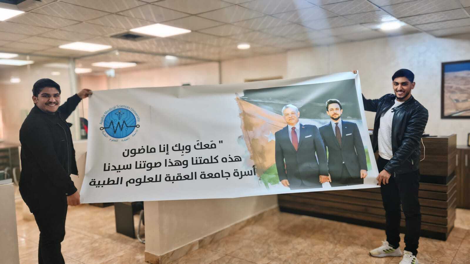 22 الاعلامي - استقبل مكتب شركة العقبة للتعليم وفد من طلبة جامعة العقبة للعلوم الطبية للانطلاق لاستقبال جلالة الملك وولي العهد في مطار ماركا العسكري تأكيداً على المواقف الوطنية الثابتة.