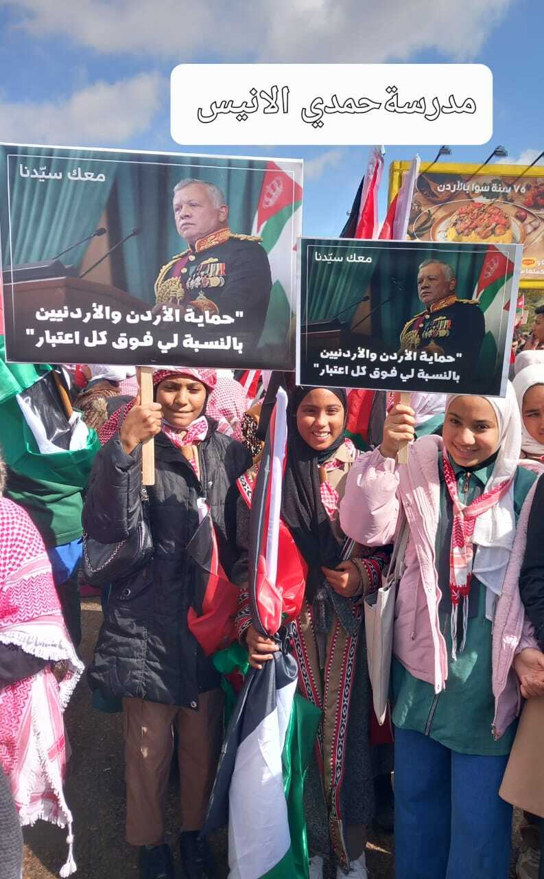 حيث يشارك ما يزيد عن 4000 من الطلبة والمعلمين من مختلف مدارس لواء الشونة الجنوبية في استقبال جلالته، تعبيراً عن حبهم وولائهم للقيادة الهاشمية، وما يقارب من 200طالب وطالبة من المرشدات وحركة الكشافة،وعدد من ممثلي الدوائر الرسمية والفعاليات الشعبية ومؤسسات المجتمع المدني مرحبين ومستقبلين للموكب الملكي باليافطات الترحيبية المعبرة عن انتمائهم واعتزازهم بالأردن وقيادته رافعين الصور والاعلام واليافطات المؤيدة لجلالة الملك ومواقفه المشرفة ومؤكدين على وقوفهم خلف جلالة الملك عبد الله الثاني، الرافض لتهجير الفلسطينيين من قطاع غزة والضفة الغربية المحتلة، والداعم للقضية الفلسطينية، مشيدين بتصريحات جلالته خلال لقائه الرئيس الأميركي دونالد ترمب، والتي عبرّت عن موقف الدولة بكل حكمة، والدفاع عن مصالحها وحماية الدولة من أية تهديدات.