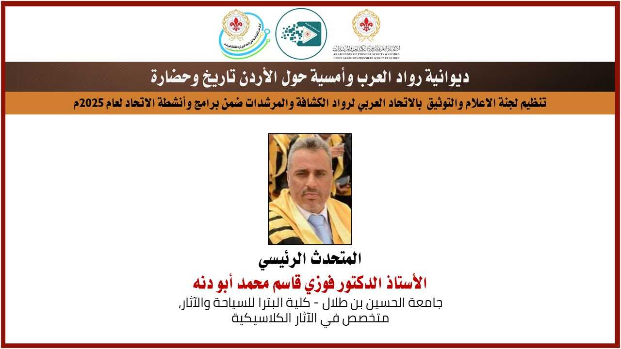 أقيمت مساء اليوم الاثنين 17 فبراير 2025م، فعالية ديوانية "رواد العرب" ضمن برامج لجنة الاعلام والتوثيق بالاتحاد العربي لرواد الكشافة والمرشدات ، بعنوان "الأردن تاريخ وحضارة"، وذلك ضمن أنشطته وبرامجه لعام 2025م.