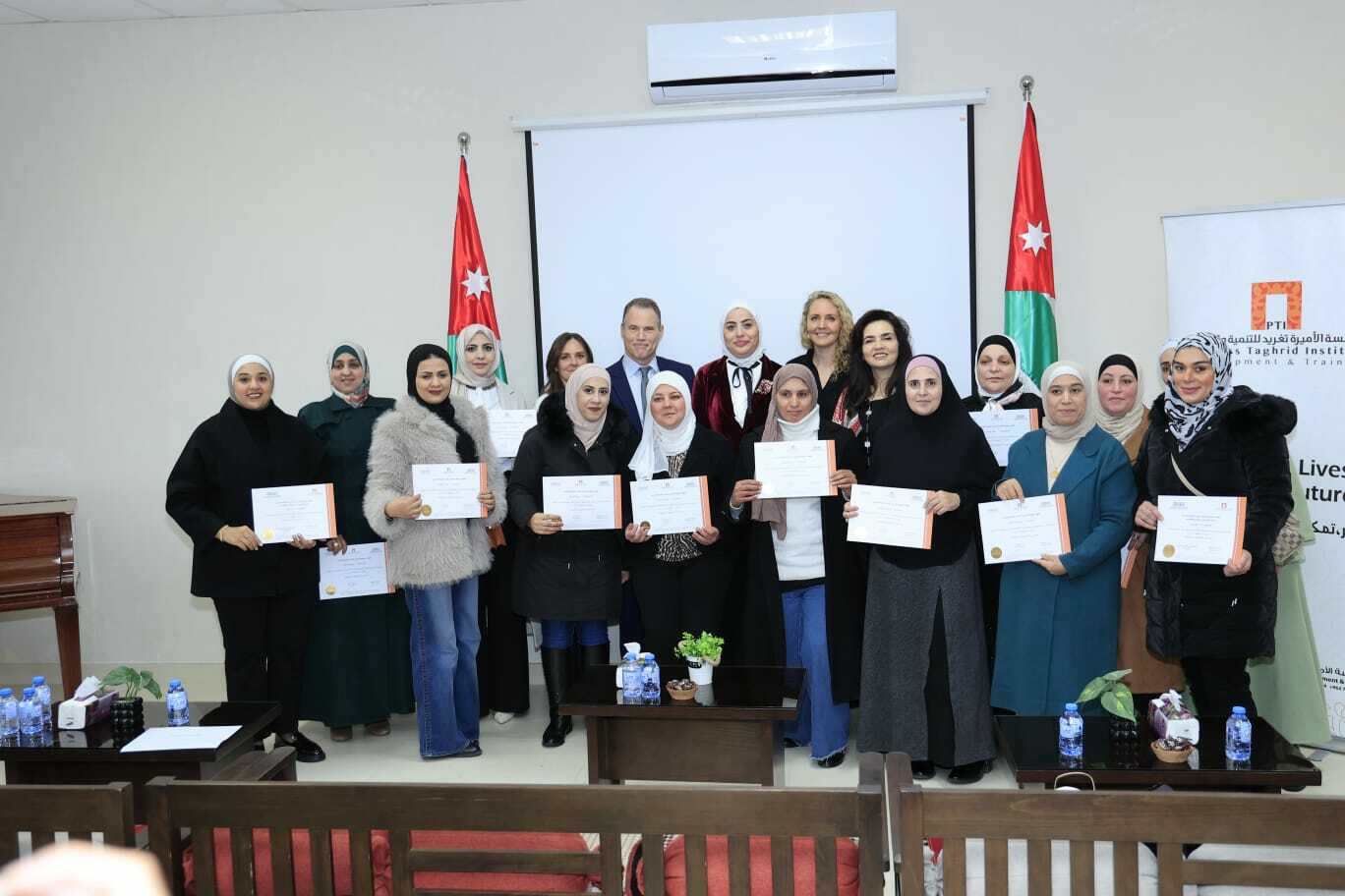 وفي ختام الفعالية وزعت بني مصطفى الشهادات على 70 متدربًا ومتدربة أكملوا برنامجًا تأهيليًا وتدريبيًا شاملًا، صُمم وفق أحدث القوانين والتشريعات ليكون الأول من نوعه، متضمنًا دليلًا تدريبيًا متكاملًا لمقدمي الرعاية، حيث خضعوا فيه لاختبار متخصص أعدّته اللجنة الفنية في مؤسسة الأميرة تغريد للتنمية والتدريب، بمشاركة أكادميين جامعيين، حيث شمل البرنامج الجوانب الصحية والاجتماعية والنفسية والفنية والمهنية والقانونية، استنادا إلى المادة التدريبية التي تم إعدادها للبرنامج.
